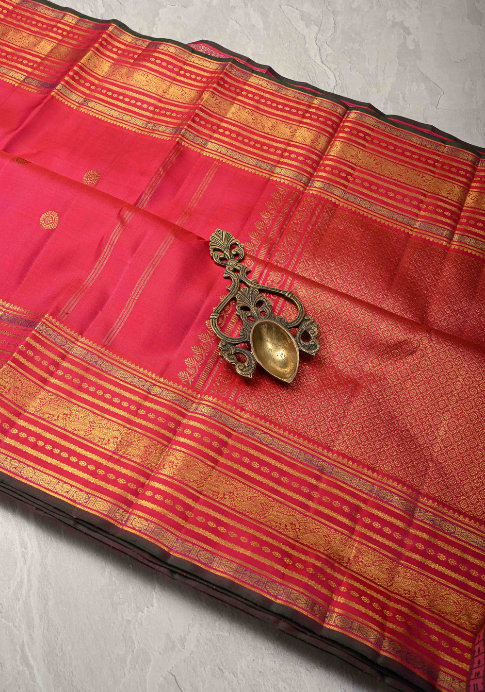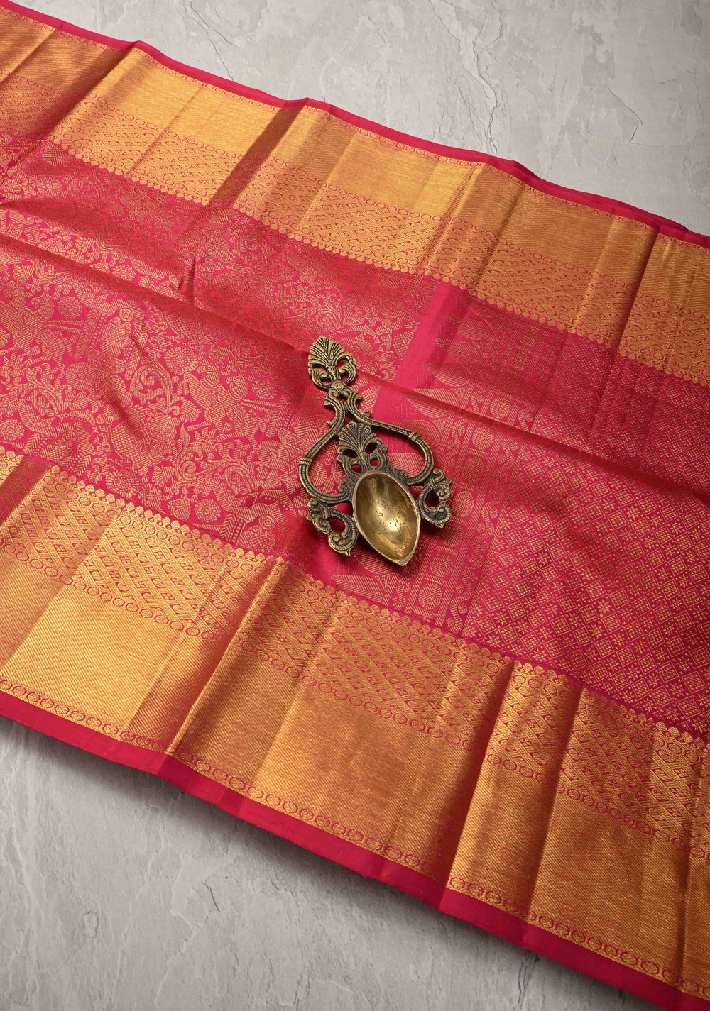 Hot Pink Kanjivaram Pure Silk Saree with Zair Buttas and Zari Border | SILK MARK CERTIFIED