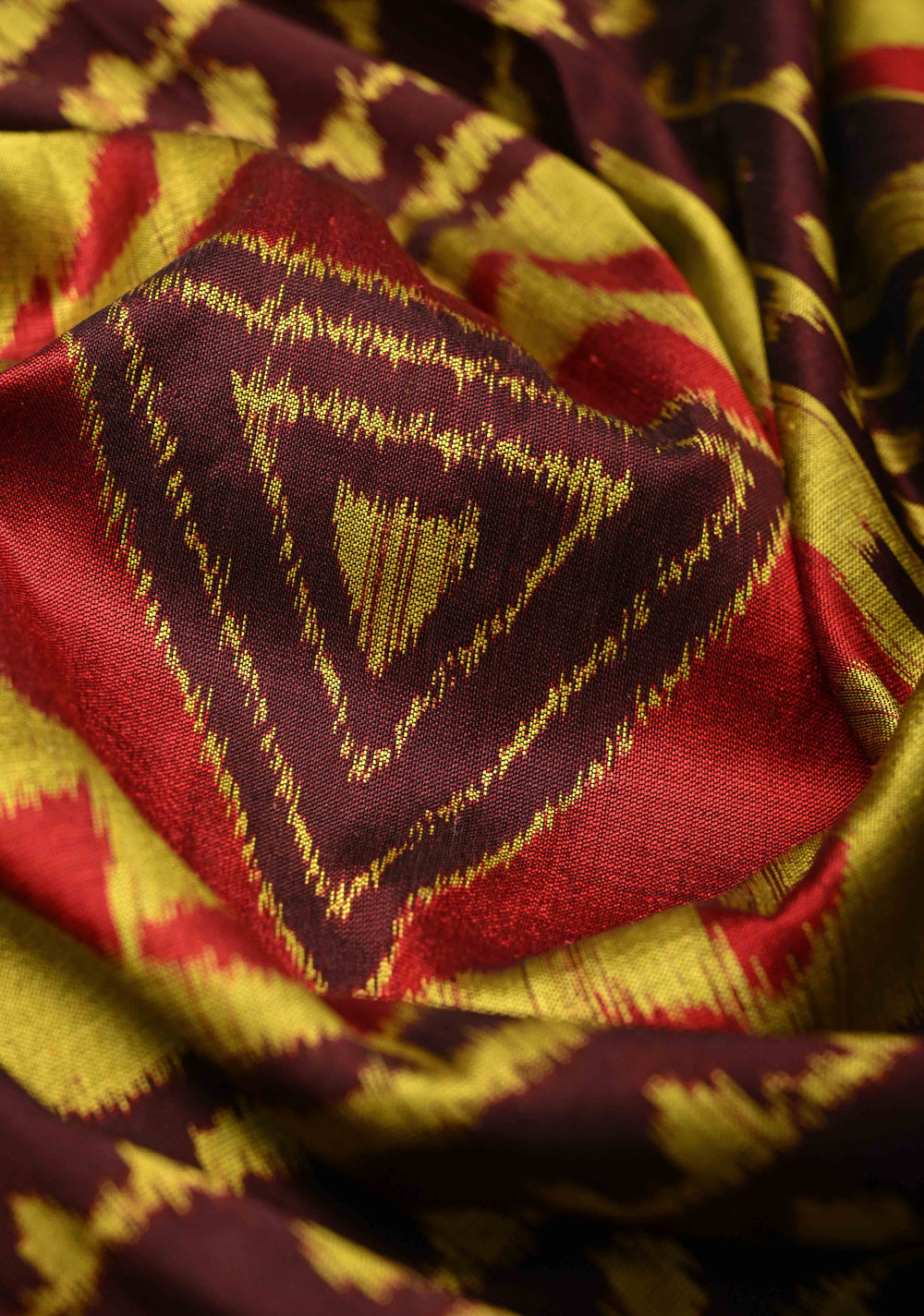 Madhuri Dixit Sambhalpuri Ikkat Handloom Saree in Red and Brown , No Blouse Piece | SILK MARK CERTIFIED