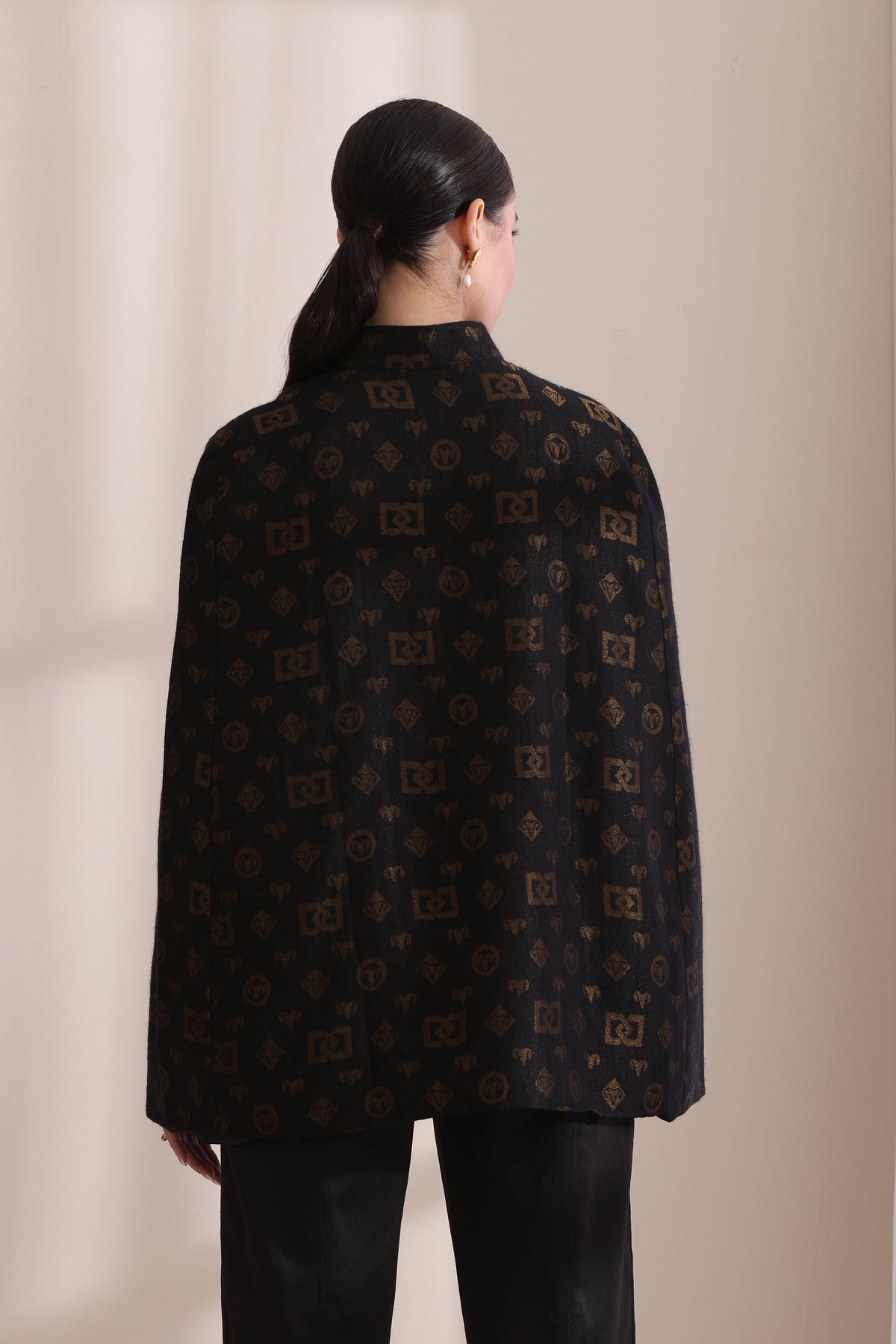 Dusala exudes luxury and grandeur. This cape, crafted from the finest wool silk blend and woven with zari, showcases a stunning interplay of texture and design. The intricate Zari work highlights the rich tradition of craftsmanship, making it a versatile and sophisticated addition to any wardrobe.