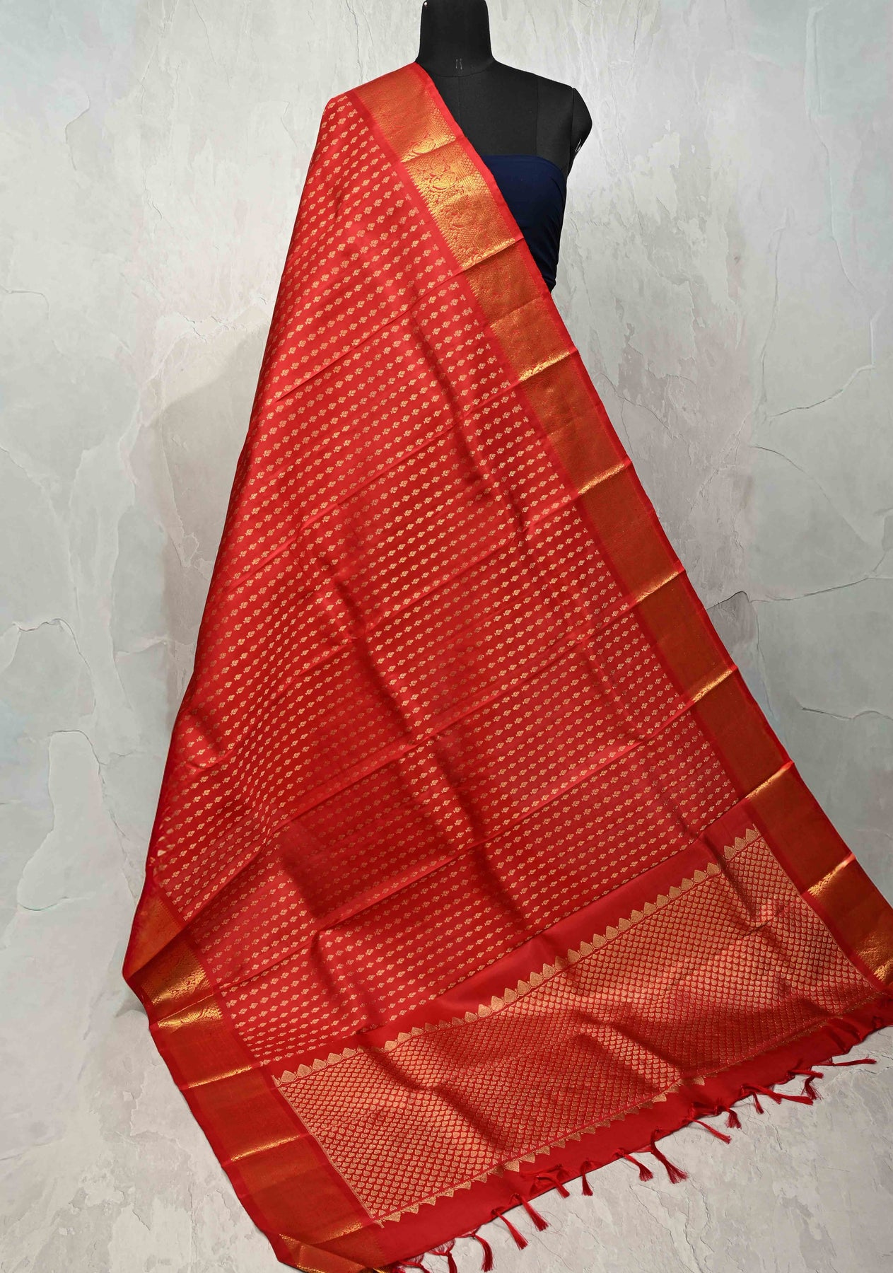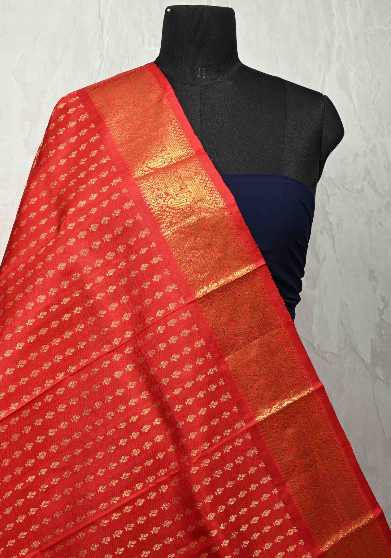This pure Kanjivaram dupatta in a vibrant red hue is a classic expression of South Indian craftsmanship. Adorned with intricate floral brocade woven seamlessly into the luxurious silk, it radiates richness and tradition. The finely detailed zari borders add a regal touch, enhancing the dupatta’s elegance and making it a perfect accessory for festive occasions, weddings, and traditional celebrations.