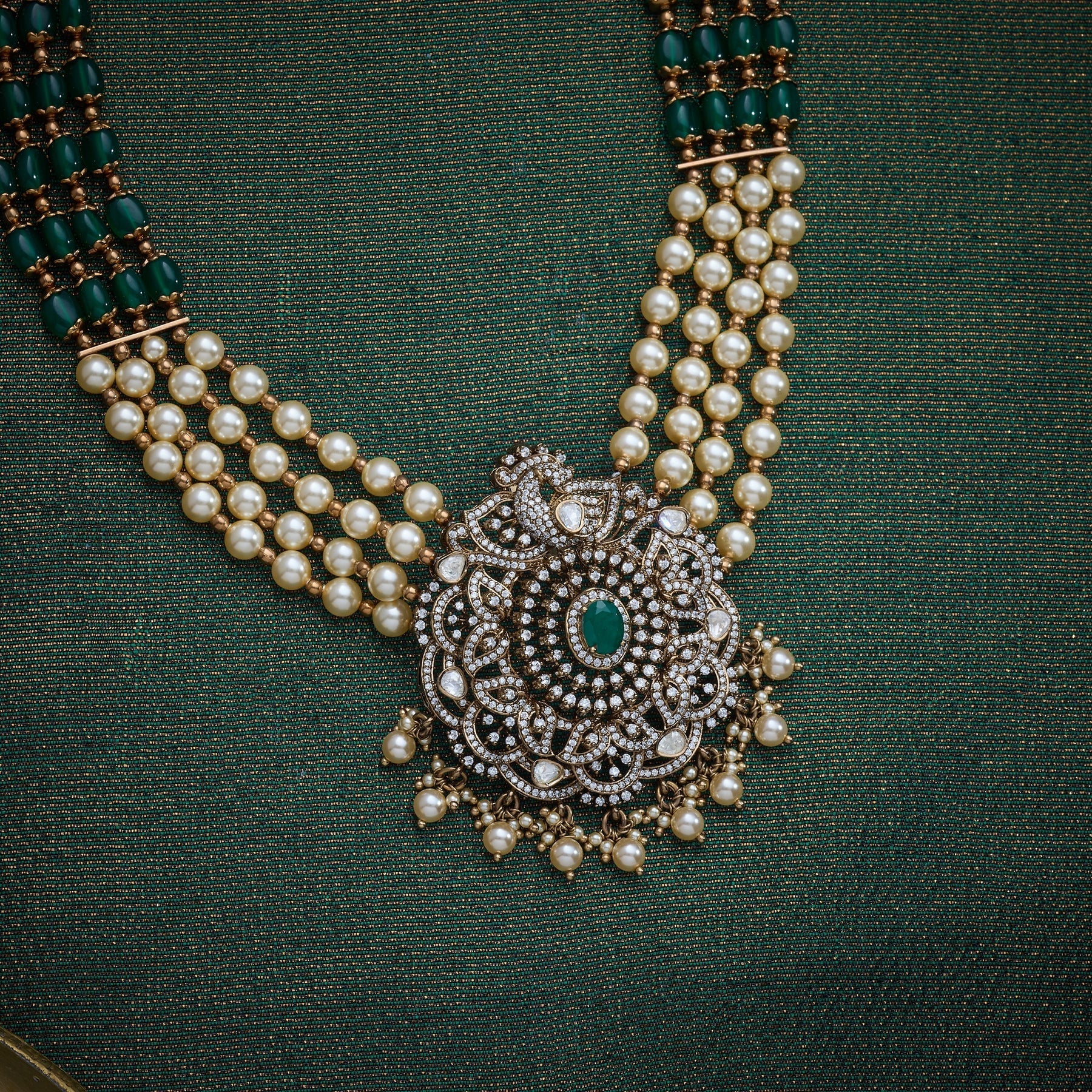 Victorian Feather Necklace Set This exquisite necklace set showcases intricate Peacock and Floral motifs adorned with rich Emerald gemstones and lustrous Pearl accents. Each piece features carefully selected Emerald beads that catch the light with sophisticated depth, complemented by the timeless elegance of Pearls. The Victorian-inspired design combines ornate Feather detailing with delicate Floral elements, creating a statement piece that transitions seamlessly for occasions. The harmonious blend of Emerald and Pearl elevates the aesthetic, offering a jewel-toned palette that enhances any complexion. Perfect for collectors of vintage-inspired jewellery or those seeking a distinctive accessory with artisanal craftsmanship.