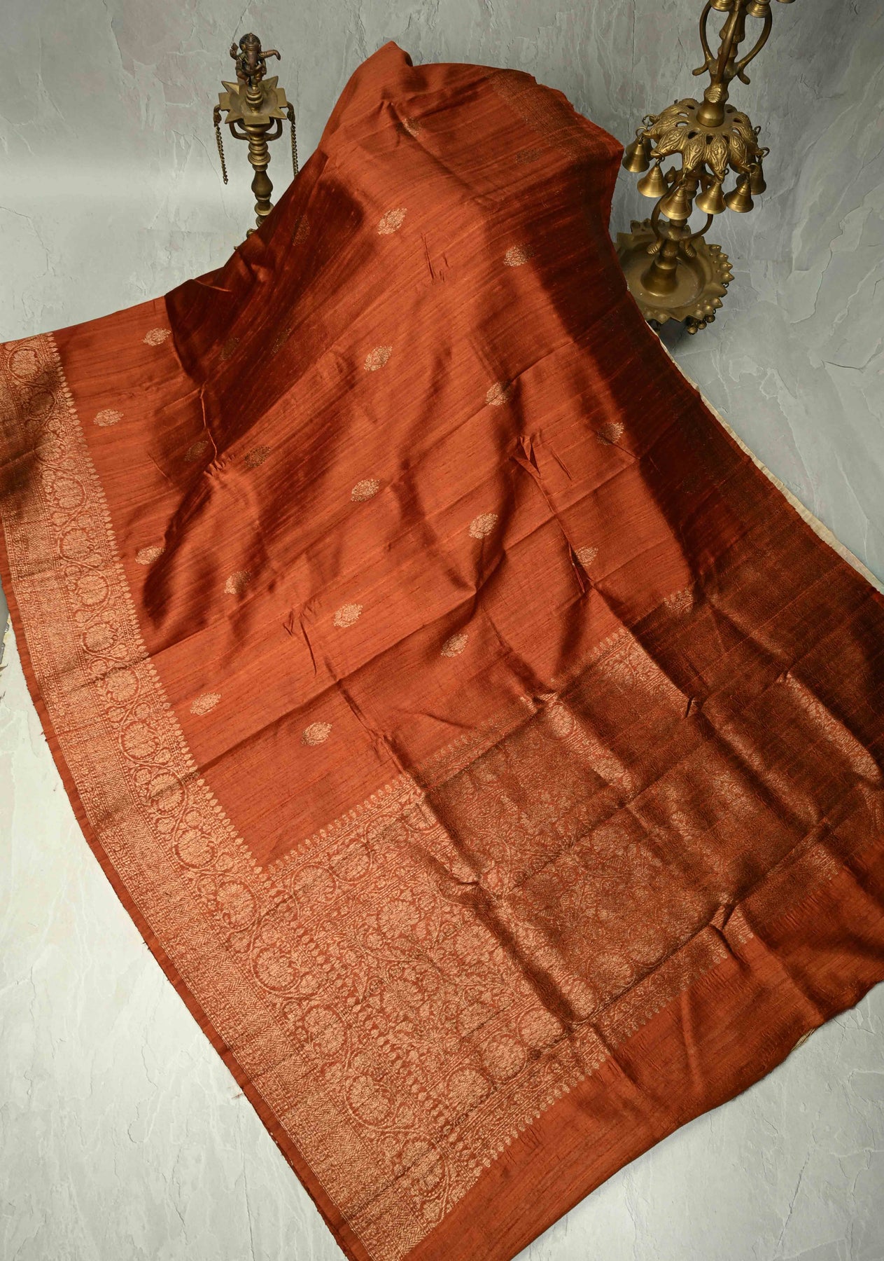 Step into timeless elegance with this Camel Brown Banarasi Raw Silk Saree, a perfect blend of traditional craftsmanship and fabric. The rich raw silk drapes beautifully, giving a graceful and regal silhouette ideal for weddings, festive celebrations, and special occasions.