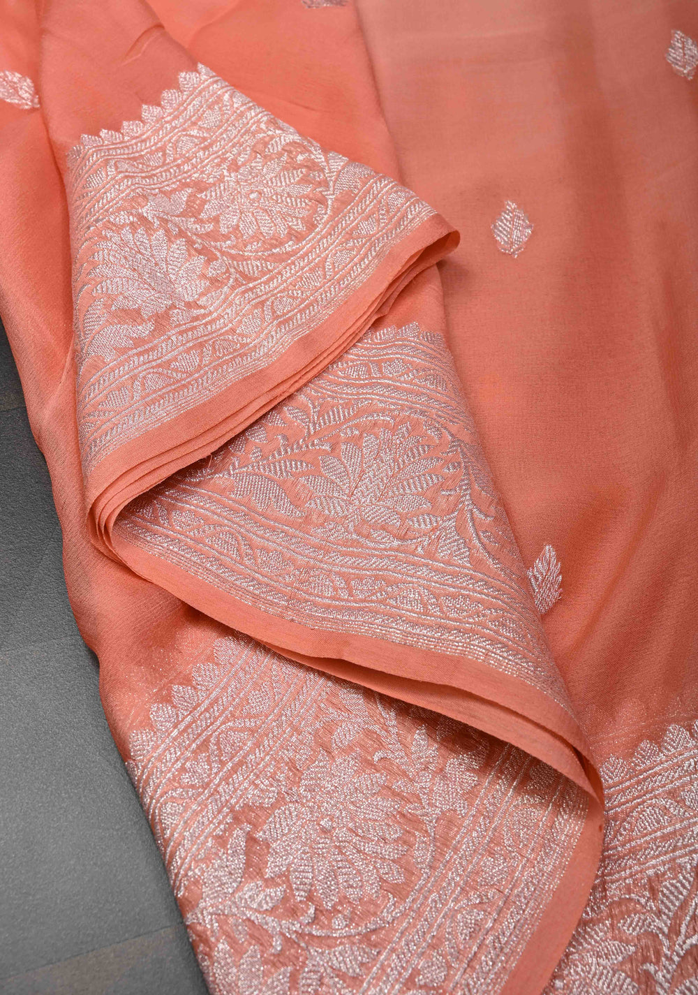 Banarasi sarees are handcrafted in the holy city of Varanasi in India and are renowned for their sheer elegance and luxurious look. What makes them special is the intricate craftsmanship with gold and silver brocade or zari and opulent embroidery. Each saree takes 15 days to six months to complete, based on the complexity of designs. The motifs are influenced by Mughal art, including floral patterns, foliate designs, and paisleys making each piece a work of art.