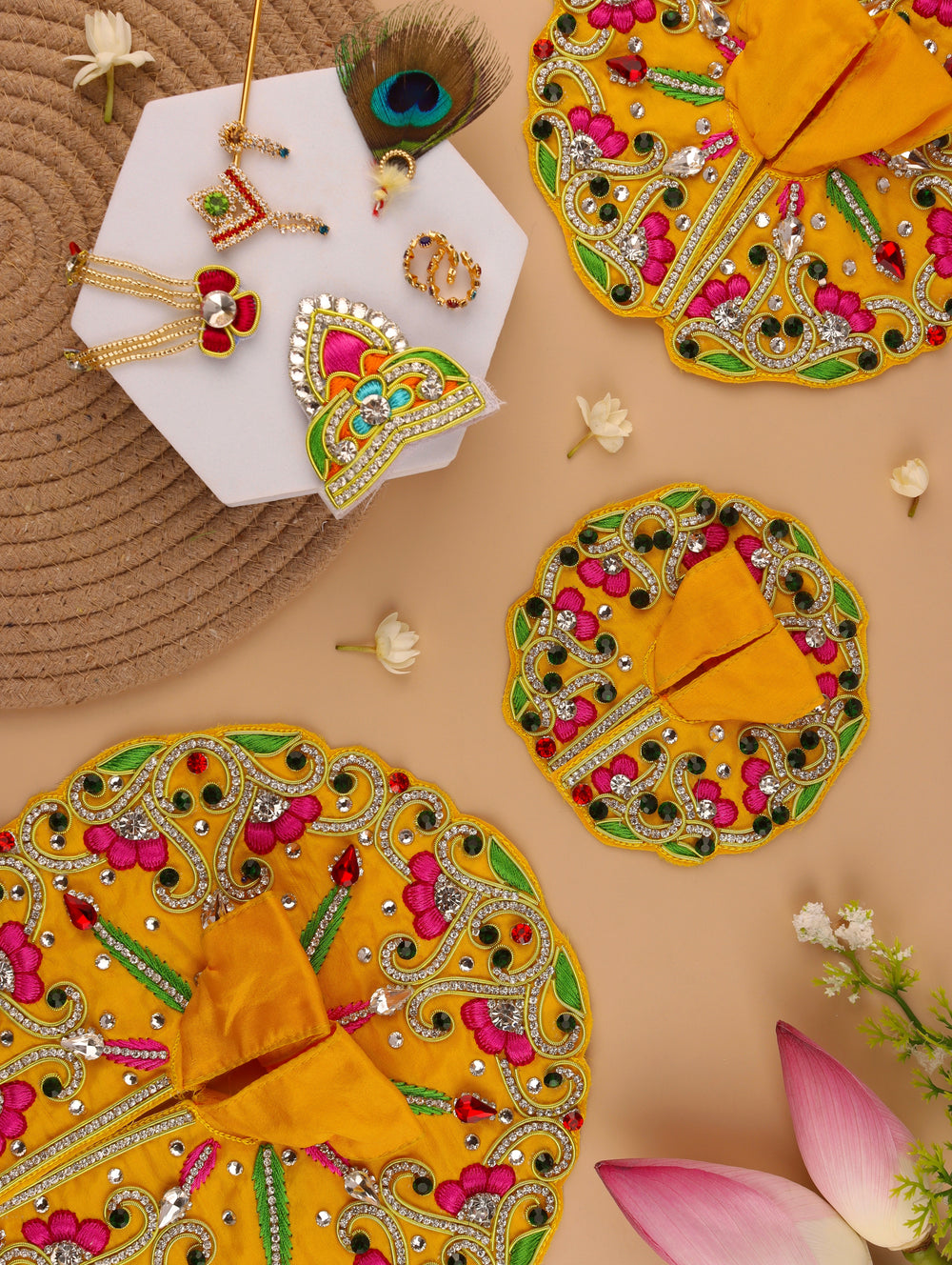 Yellow Mayur Pushp Laddu Gopal Poshak