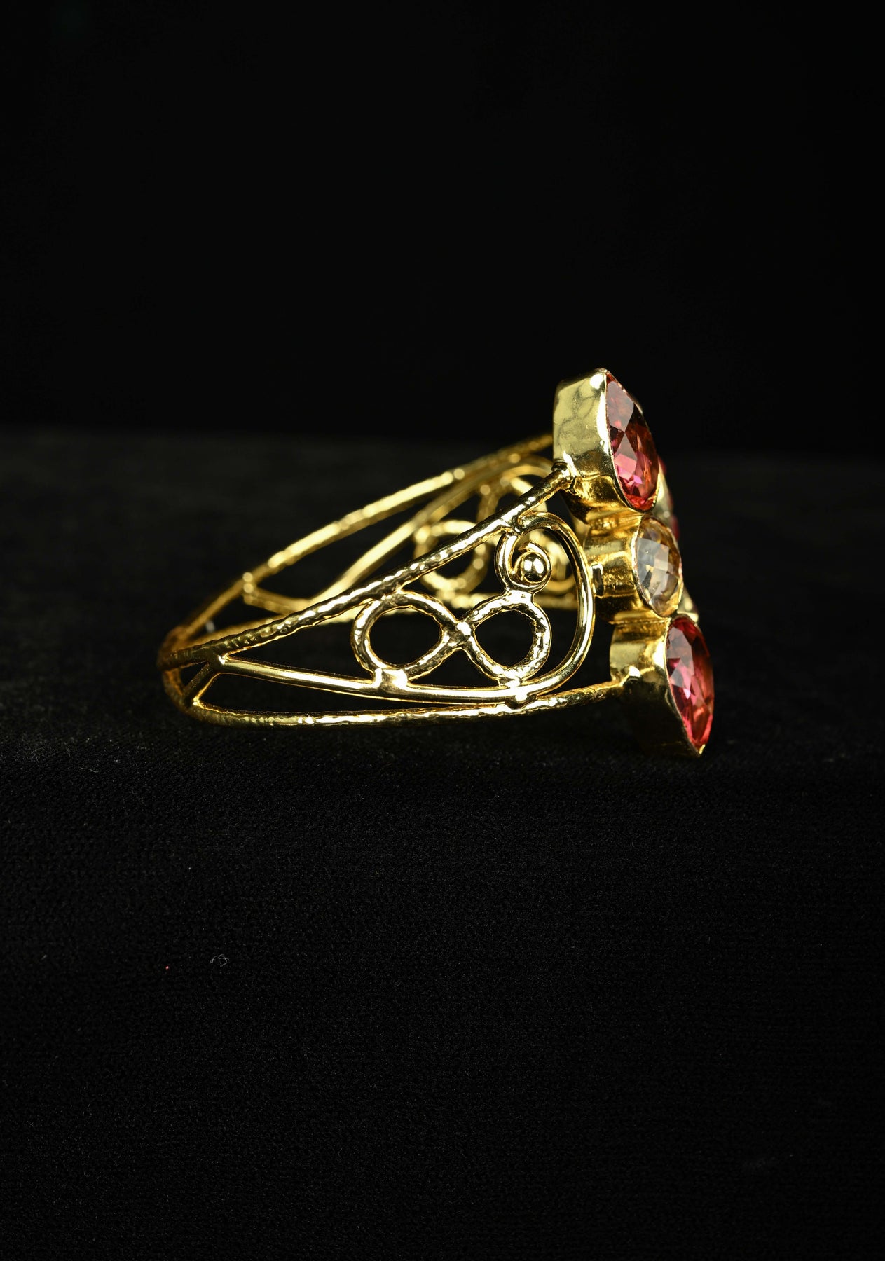Exquisite and artistic, the Adjustable Handcuff Bracelet with Pachi Kundan, Monalisa, and Glass is a statement accessory that blends traditional craftsmanship with contemporary design. Featuring intricate Pachi Kundan work, accented with Monalisa stones and sparkling glass elements, this handcuff bracelet brings elegance and versatility to your jewelry collection. The adjustable design ensures a comfortable fit, making it perfect for festive occasions, weddings, or adding a regal touch to everyday outfits.
