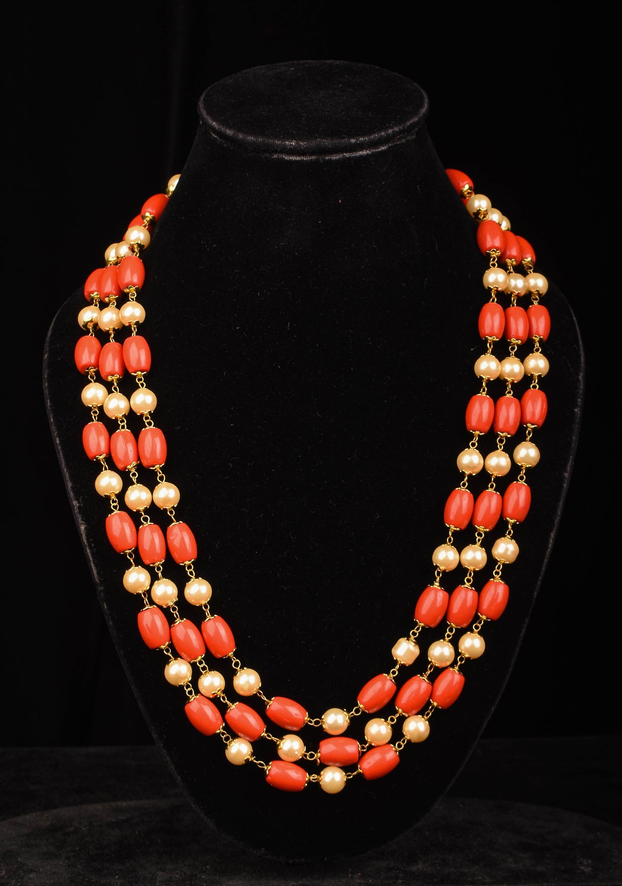 The 3-Layered Coral Necklace with Pearl Accents is a beautifully crafted accessory that blends coral beads with the elegance of pearl accents. With its multi-layered design, this necklace offers a chic and sophisticated look, perfect for enhancing both casual and formal outfits. Its unique combination of colors and textures makes it a versatile and eye-catching piece for any occasion.