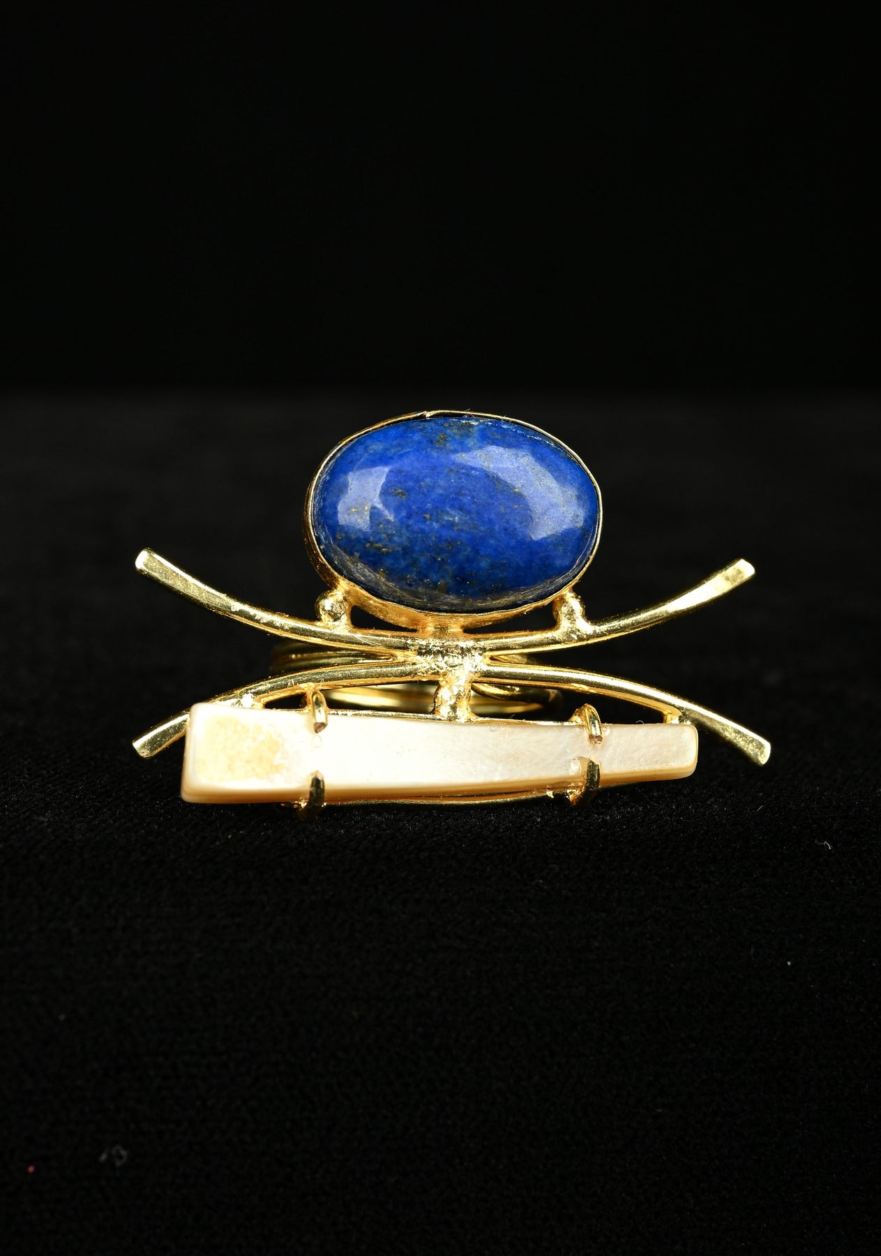Graceful and luminous, the Monalisa Stone and Mother of Pearl Gemstone Ring with Gold Tone blends soft elegance with timeless design. Featuring a radiant mother of pearl base accented by a smooth Monalisa stone, this ring showcases a beautiful play of light and color. The warm gold-toned setting enhances its refined appeal, making it a versatile accessory for both everyday wear and special occasions. A sophisticated statement ring that celebrates understated luxury and artisanal craftsmanship.