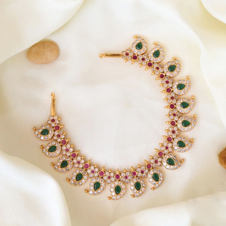 92.5 Silver White-Green and Pink Stone Studded Mango Repledent Necklace