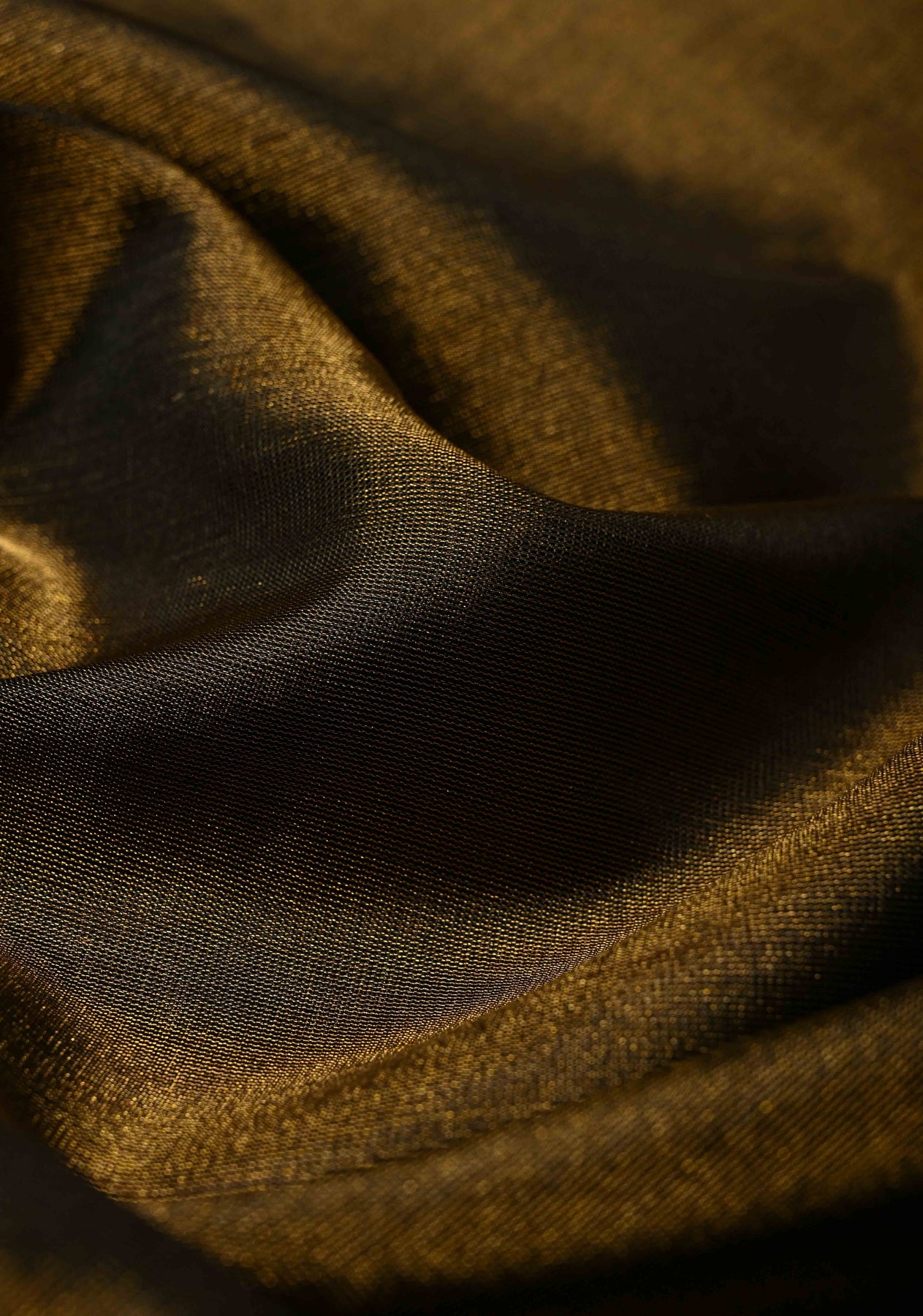 Embrace sophisticated drama with this exquisite Black Tone Pure Silk Tissue Handloom Saree. Meticulously woven from fine silk tissue, the fabric possesses a captivating, light-catching sheen and a luxurious drape.