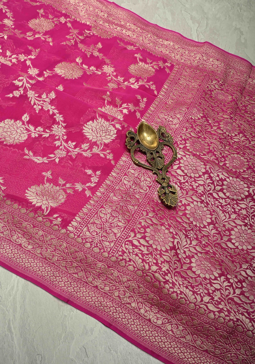Magenta Banarasi georgette silk saree with water Zari Floral jaal with zari border | SILK MARK CERTIFIED