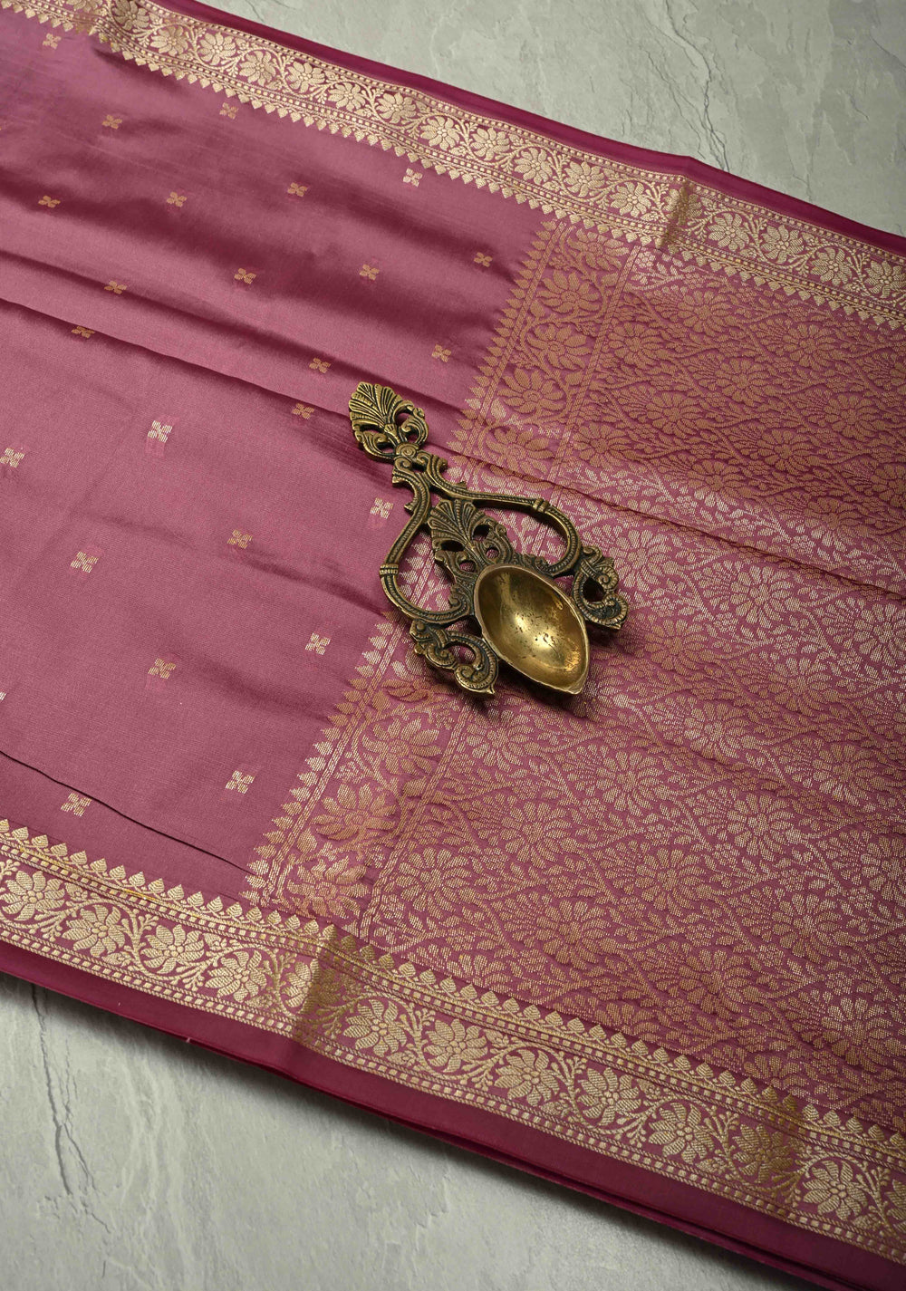 Onion Pink Semi Silk Saree with Chunri Buttis and Minimal Zari Border
