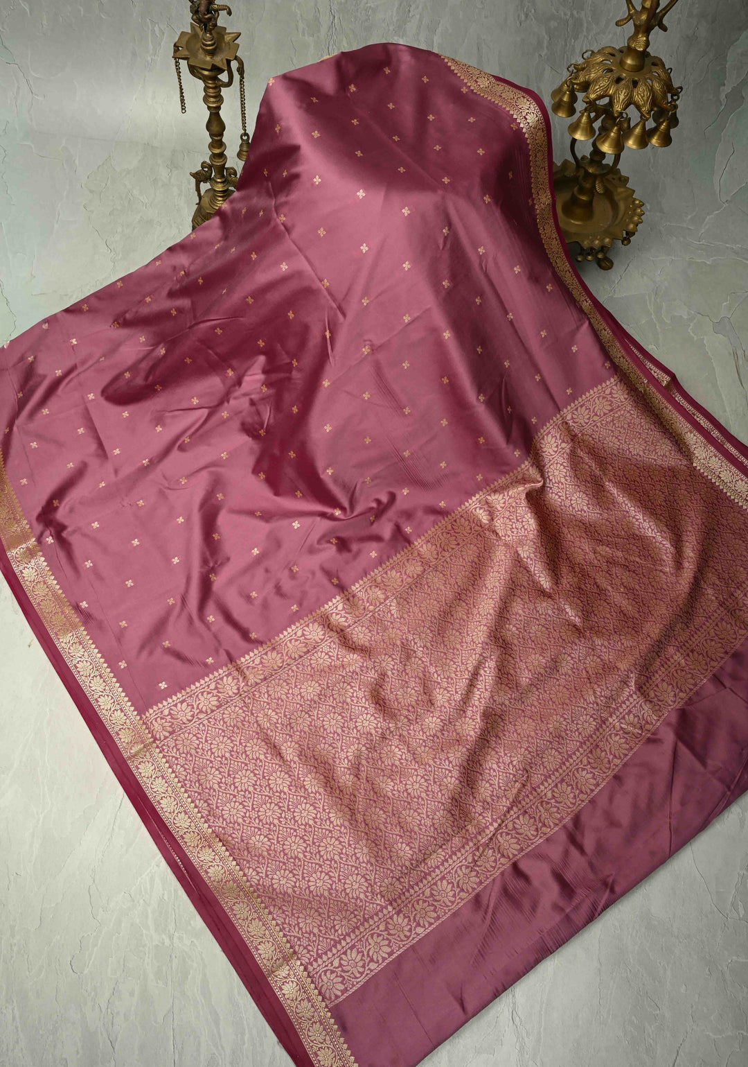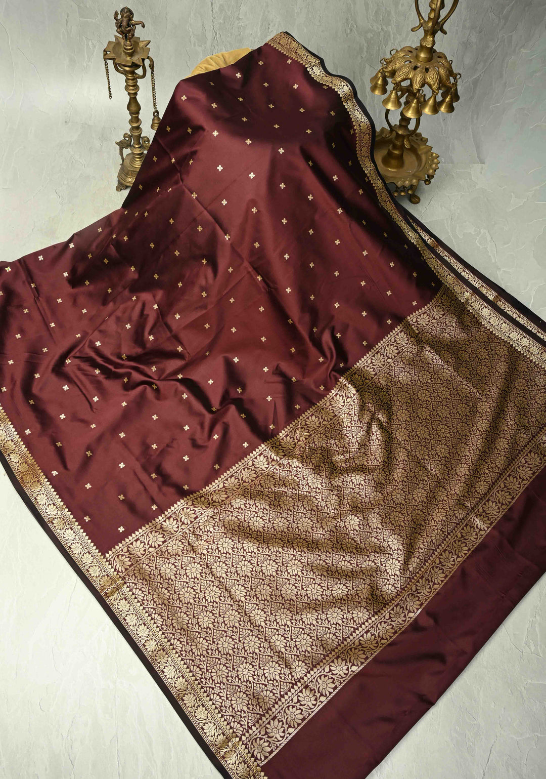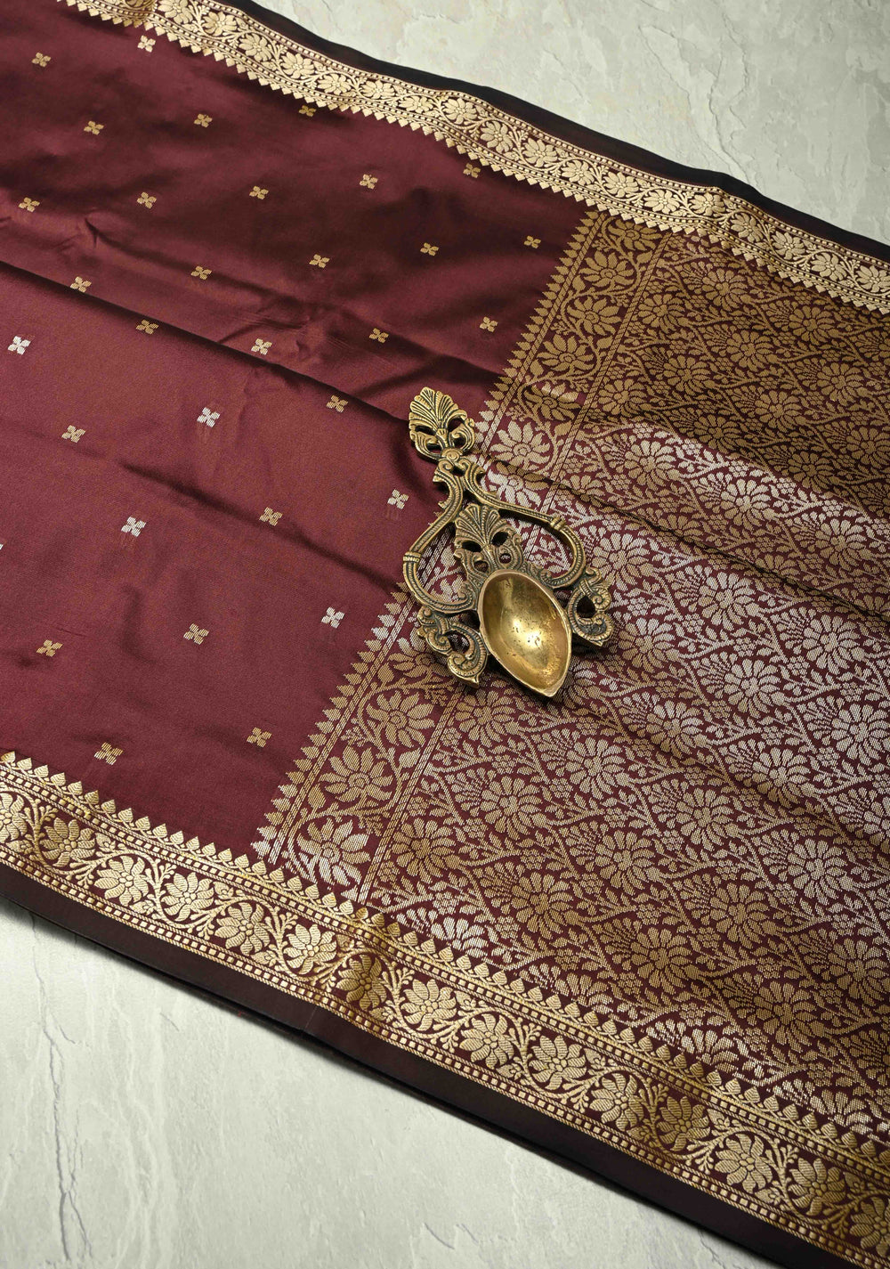 Dark Maroon Banarasi Katan Silk Saree with Floral Brocade and Contrast Zari Border | SILK MARK CERTIFIED