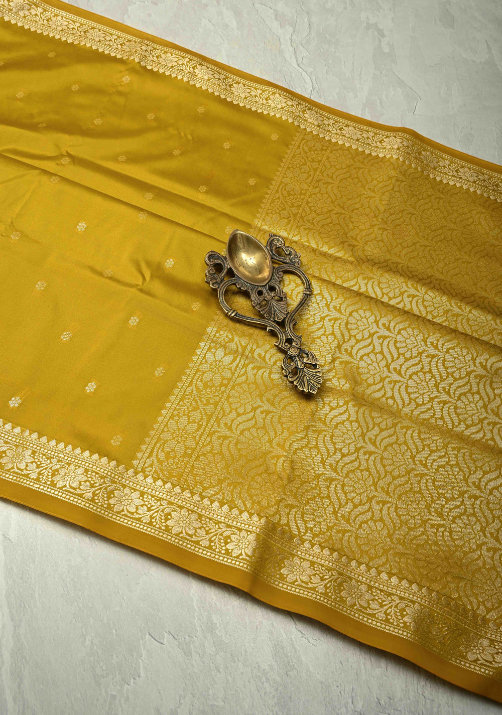 Mustard Yellow Kanjivaram Soft Silk Saree with Brocade Jaal and Contrast Zari Border | SILK MARK CERTIFIED