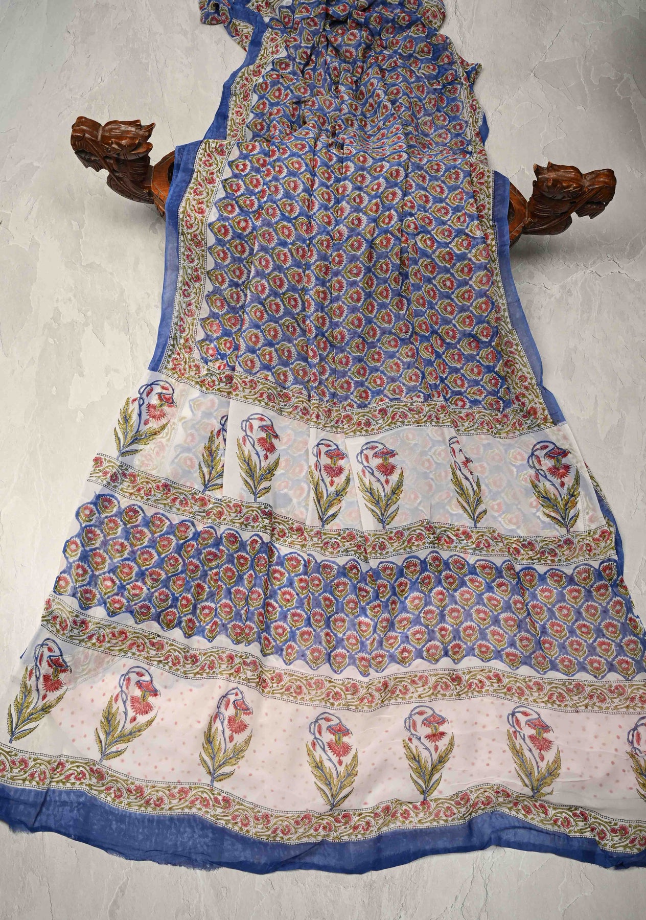 Blue Georgette Saree with Sanganeri Hand Block Print