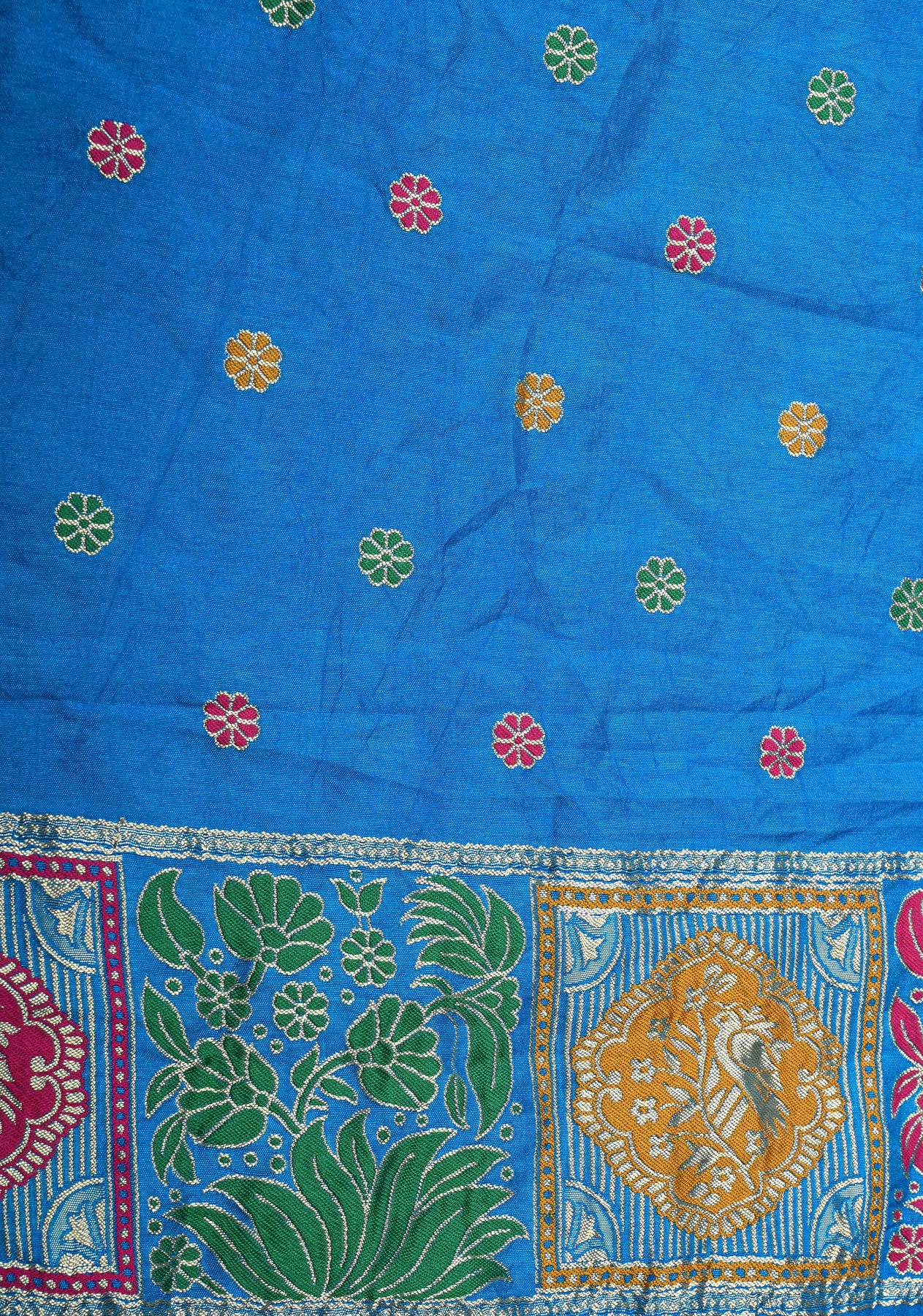 Immerse yourself in vibrant tradition with this stunning Copper Sulphate Blue Crushed Bandhani on Art Silk Saree. The luminous art silk fabric showcases a mesmerizing Bandhani tie-dye pattern, handcrafted with precision and enhanced by a beautiful crushed texture that adds depth and fluidity to the drape.