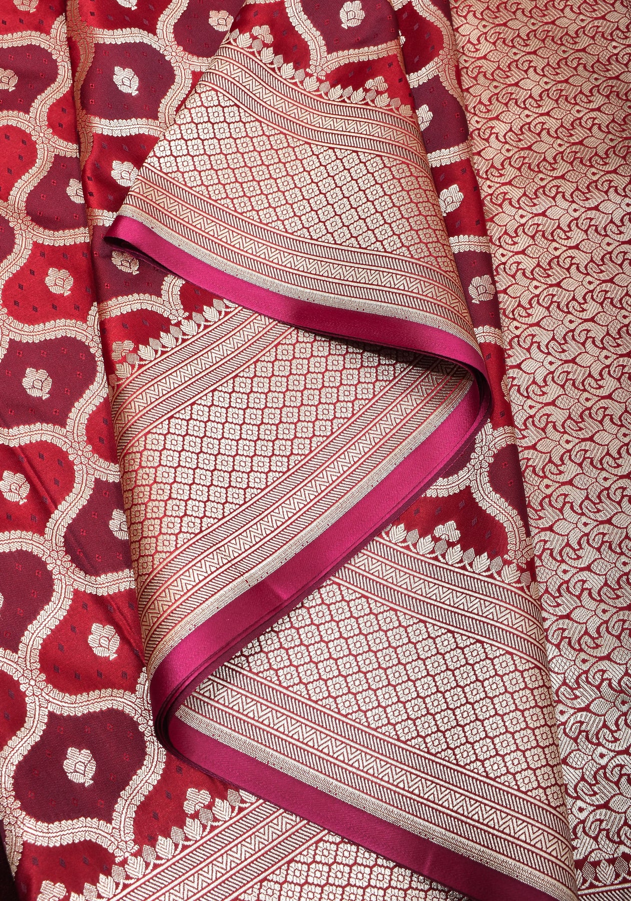 Dark Red tone Exquisite Meenakari Moroccan Design Semi Silk Saree and zari border