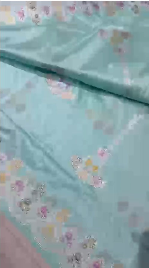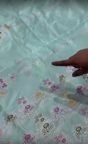 This exquisite Aqua Blue Pure Banarasi Katan Silk Saree radiates timeless elegance and exquisite craftsmanship. Woven from premium Katan silk, the saree features delicate Meenakari detailing that adds vibrant and intricate artistry across its serene aqua blue fabric, enhancing its luxurious charm. The rich zari border beautifully frames the saree, adding a shimmering finish that perfectly complements the cool, refreshing hue. Ideal for weddings, festivals, and special occasions, this saree embodies the perfect blend of traditional heritage and contemporary grace, making it a stunning choice for any celebration.