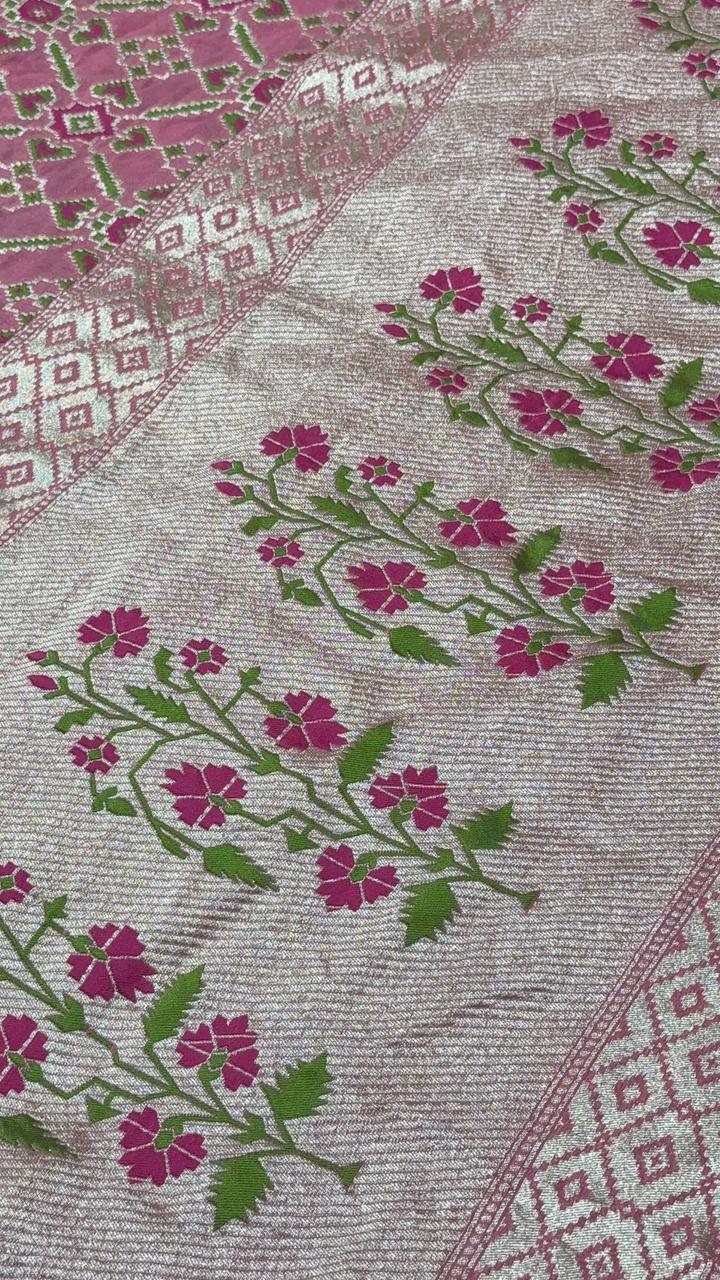 Authentic Dusty Rose Banarasi Silk Georgette Saree with Ikkat Patola Meenakari Jaal and Paithani Style Pallu | SILK MARK CERTIFIED