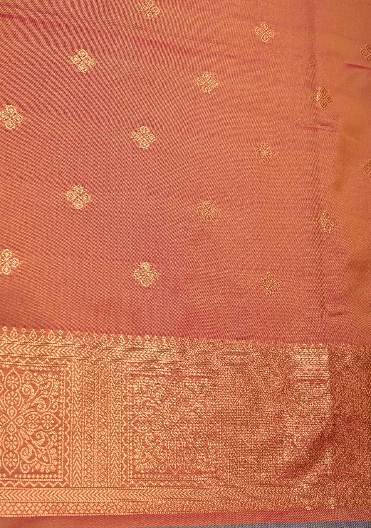 What sets this saree apart is its intricately designed border, adorned with bold geometric motifs in shimmering zari. This unique combination of paisley and geometric patterns creates a stunning contrast, celebrating the harmony of tradition and modern design. Lightweight and graceful, this saree is perfect for weddings, festive gatherings, and cultural events, offering comfort without compromising on elegance.