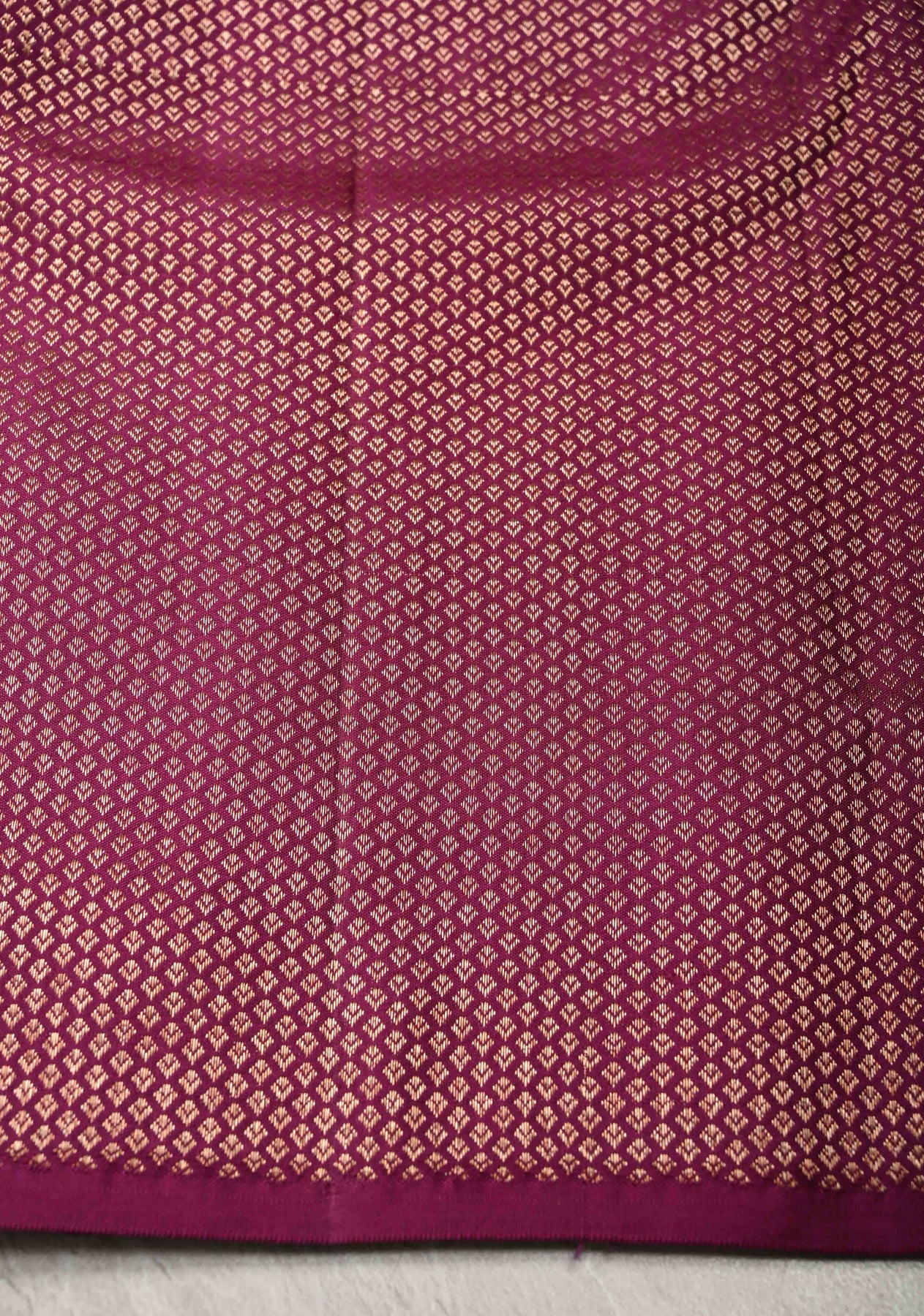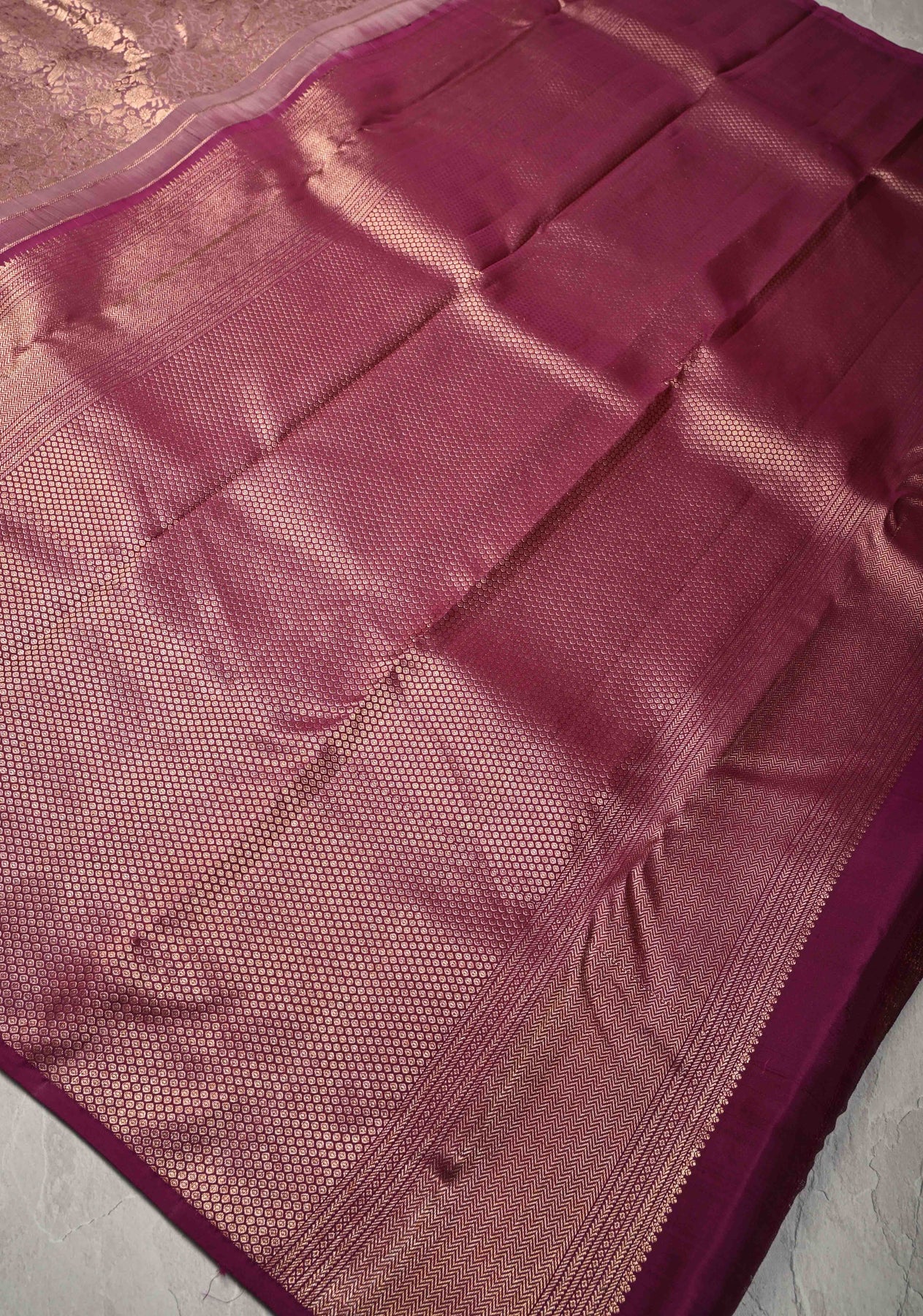 Dusty Mauve Kanjivaram Pure Silk Saree with Meenakari Floral-Peacock Brocade and Wide Contrast Border | SILK MARK CERTIFIED