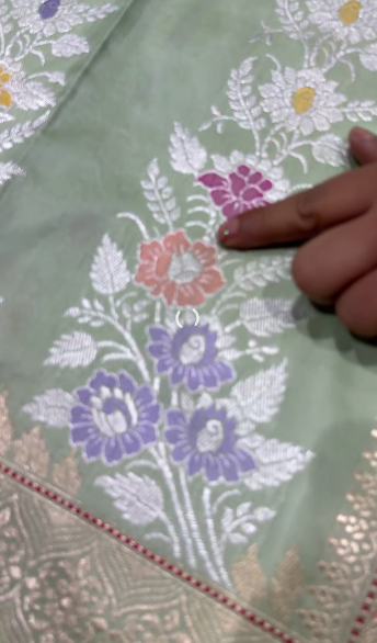 Dusty Pista Green Pure Banarasi Katan Silk Saree with Meenakari Work and Zari Border | SILK MARK CERTIFIED