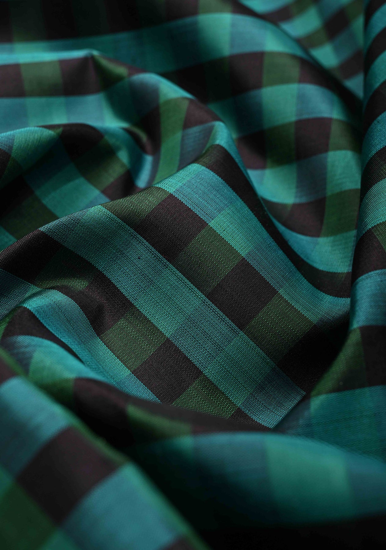 Korvai Kattam Kanjivaram Pure Silk Saree with Checks Pattern and Contrast Border | SILK MARK CERTIFIED