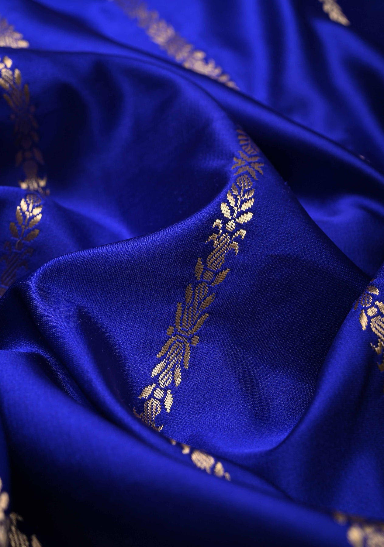 Elevate your ethnic wardrobe with this stunning Royal Blue Mashru Silk Saree, a perfect blend of traditional elegance and contemporary charm. Crafted from Mashru silk, this saree exudes a soft, glossy texture that drapes beautifully, offering comfort with a feel.