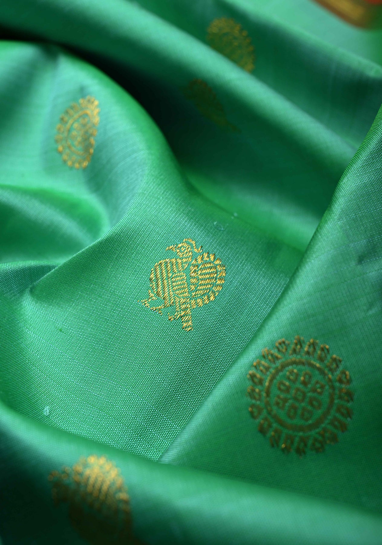 Sea Green Korvai Kanjivaram Pure Silk Saree with Zari Buttas and Contrast Zari Border | SILK MARK CERTIFIED