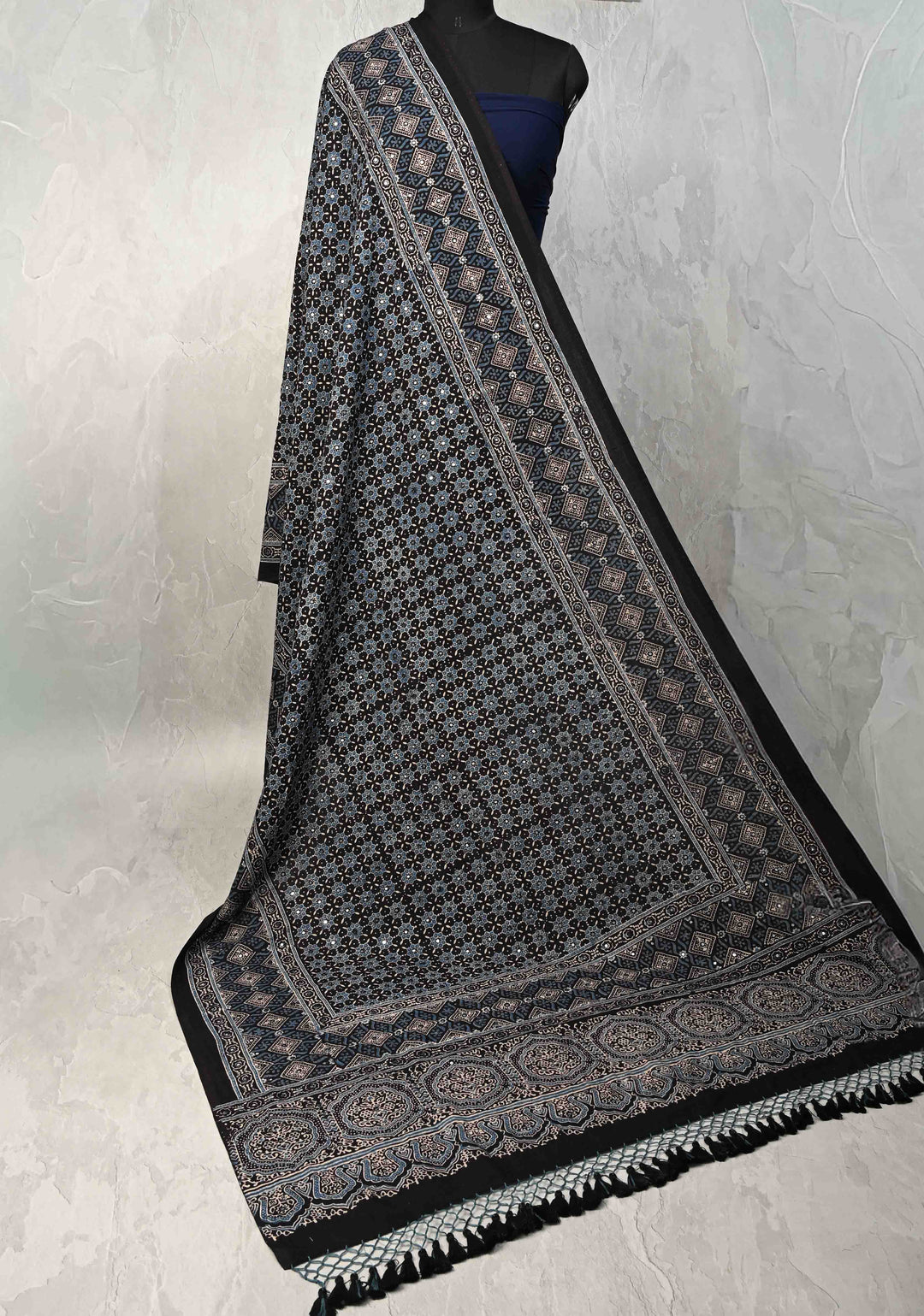 Dupatta: Authentic Black cotton dupatta and Ajrakh Hand block Print full body tikki work and tassels