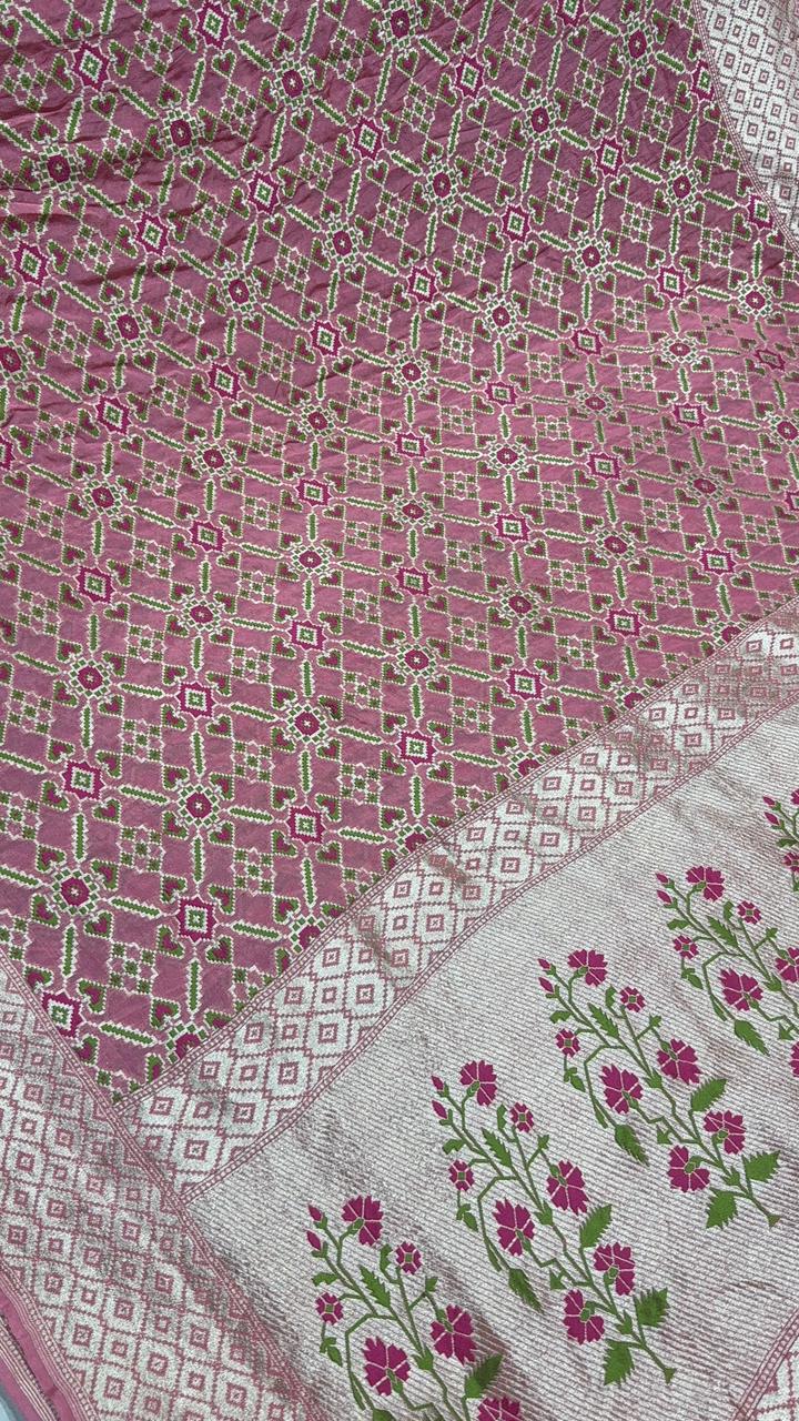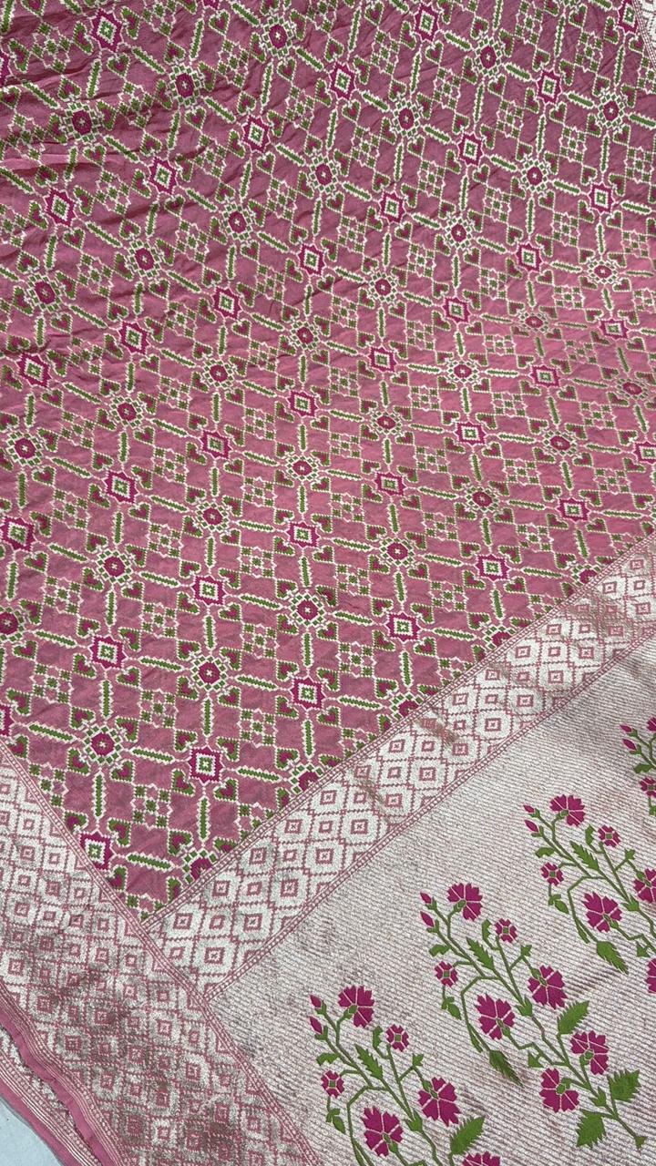 Authentic Dusty Rose Banarasi Silk Georgette Saree with Ikkat Patola Meenakari Jaal and Paithani Style Pallu | SILK MARK CERTIFIED