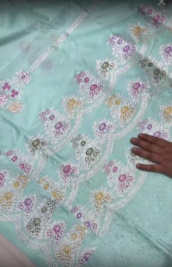 Aqua Blue Pure Banarasi Katan Silk Saree with Meenakari Detailing and Zari Border | SILK MARK CERTIFIED