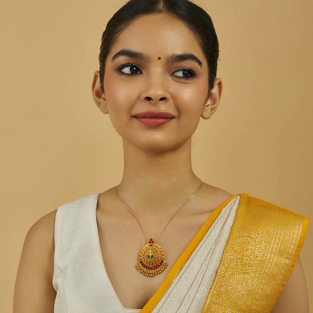 Pure 92.5 Traditional Goddess Lakshmi Pendant with Gemstone Details