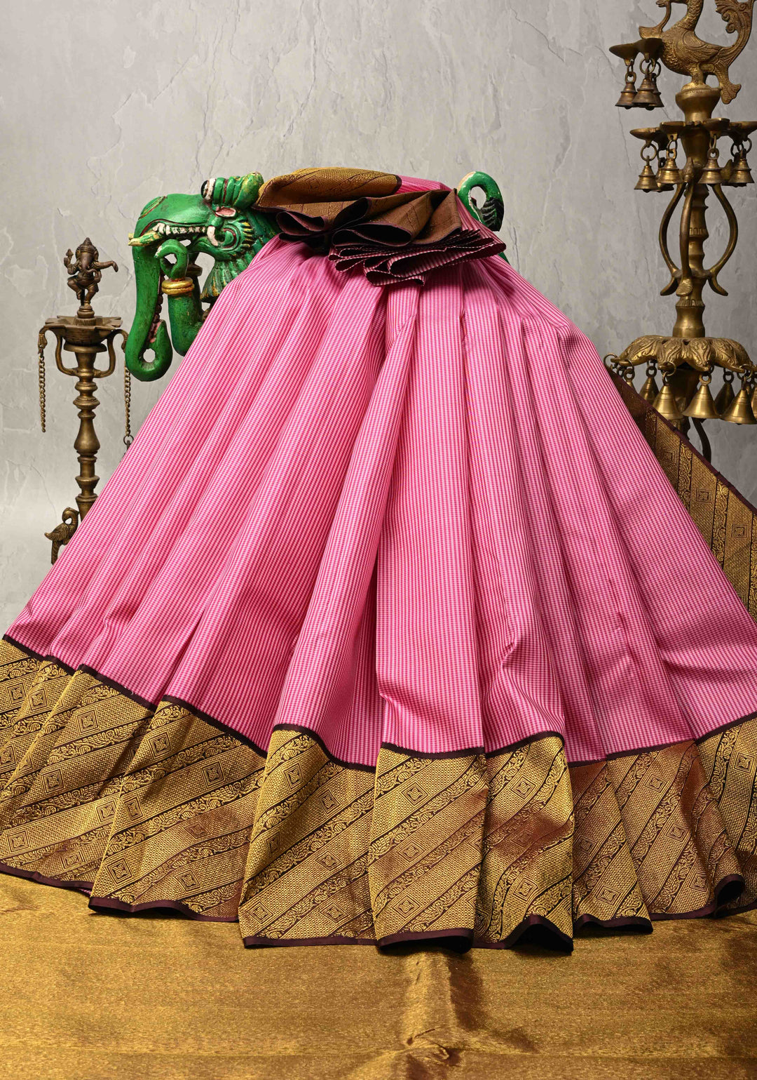 Korvai Kattam Kanjivaram Pure Silk Saree with Checks Pattern and Contrast Border | SILK MARK CERTIFIED