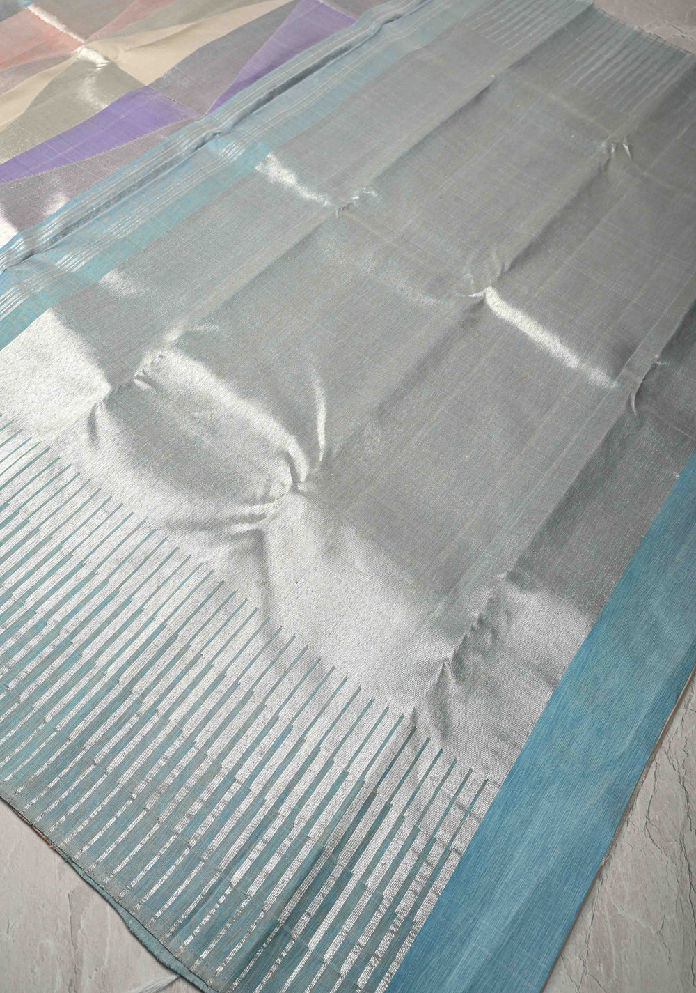 Pure Zari Pastel Hued Borderless Kanjivaram Pure Silk Saree with Rangkaat Geometric Design| SILK MARK CERTIFIED