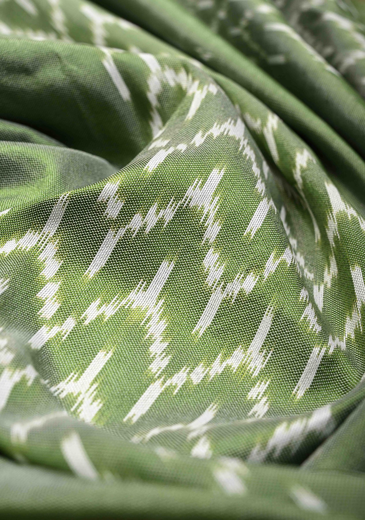 This elegant Pochampally Ikkat silk saree features a sophisticated olive green body complemented by a vibrant pink-red shot border and pallu, creating a rich yet balanced contrast. The single ikkat weave showcases intricate craftsmanship, with peacock motifs woven into the borders for a touch of traditional charm. The saree’s ikkat pallu adds depth and texture, making it a true statement piece. Crafted in lightweight pure silk, this saree drapes effortlessly, offering comfort along with timeless style. A versatile pick for festive occasions, weddings, or even styled for contemporary events, this rare color combination brings a graceful blend of culture and class to any wardrobe.