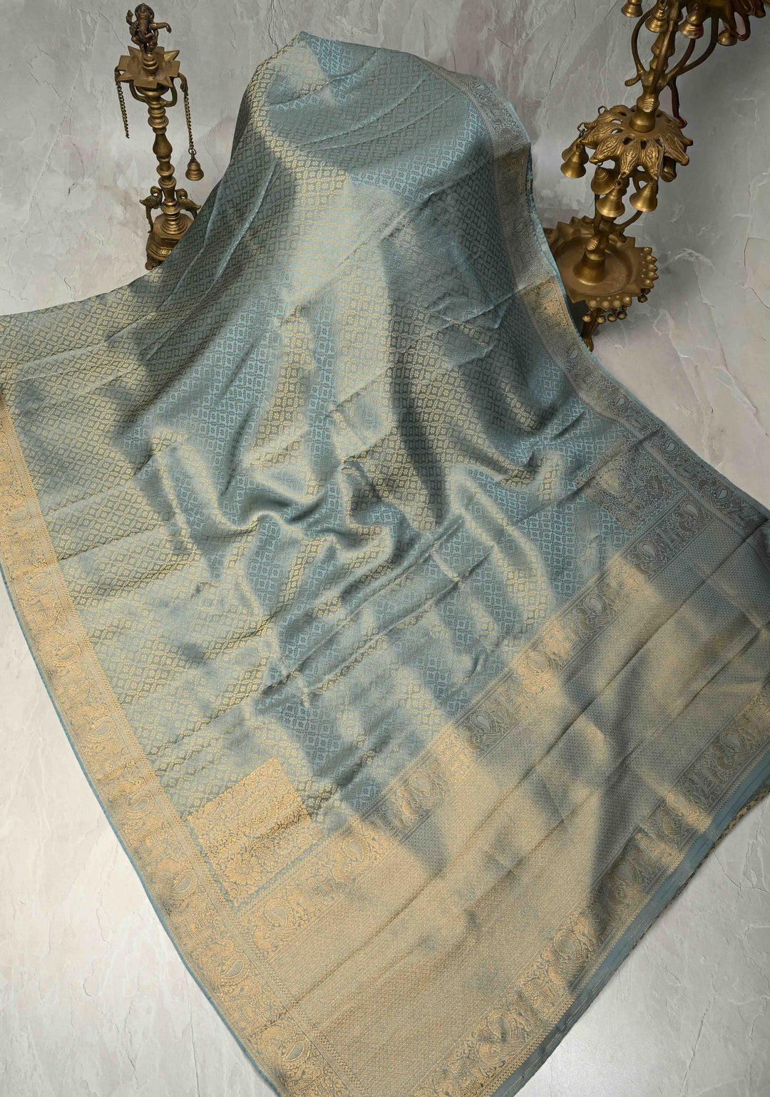 Shades of Blue Rangkaat Style Banarasi Katan Silk Saree and Persian Floral Brocade and Scallop Zari Border | SILK MARK CERTIFIED