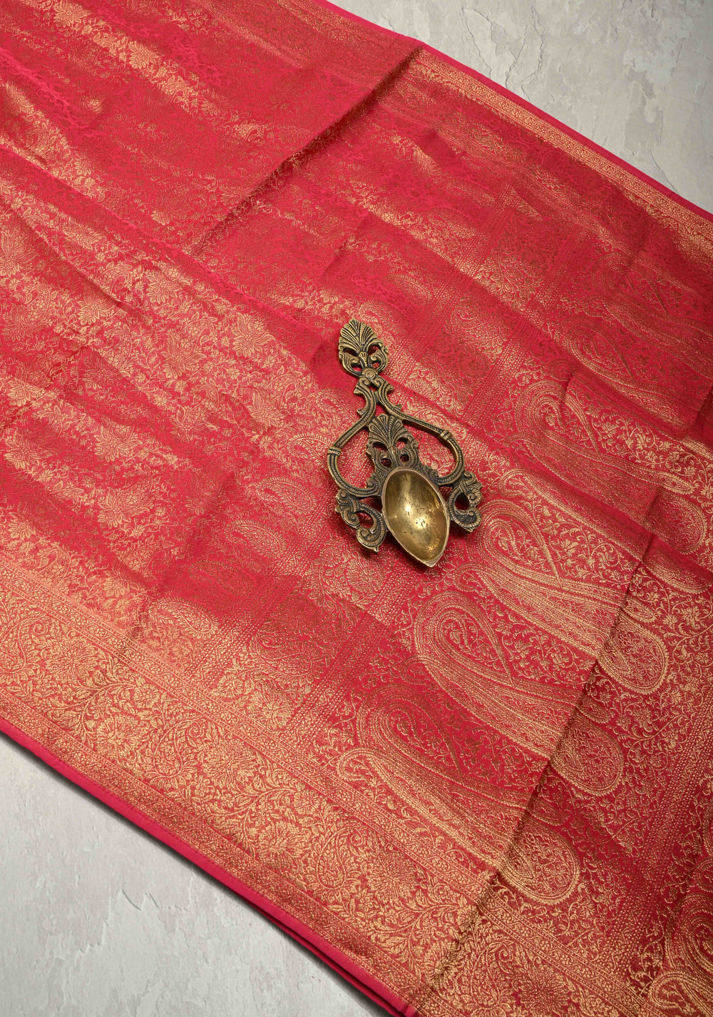 Rani Pink Vegan Viscose Silk Saree with Brocade Jaal and Zari Border