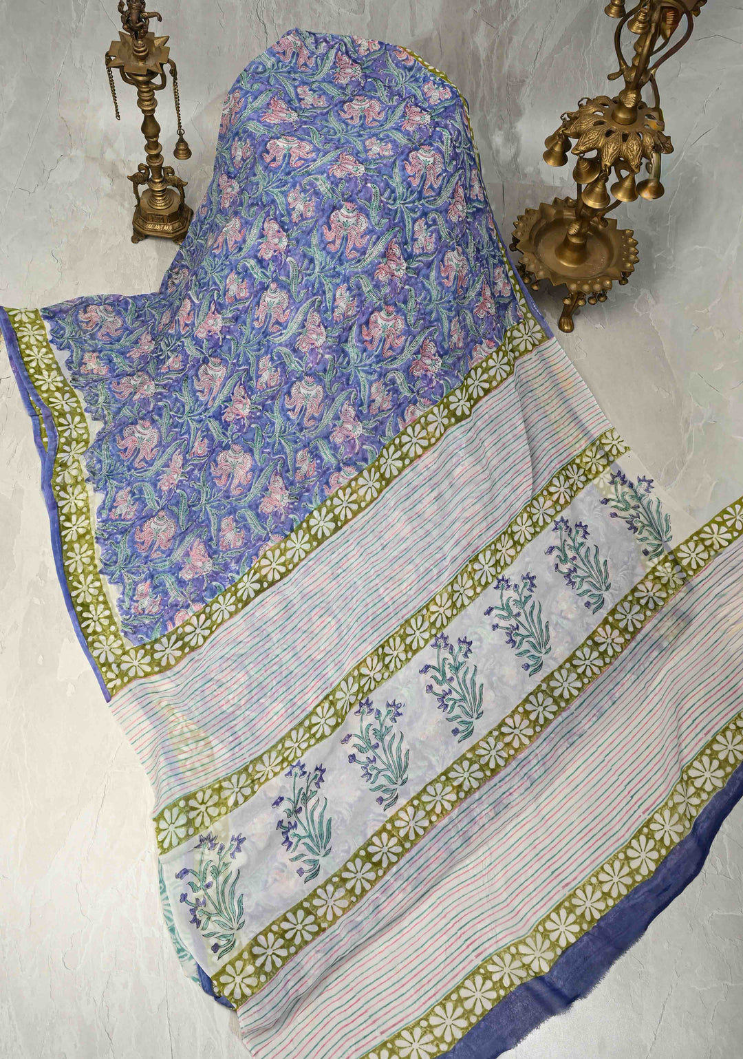 Blue Georgette Saree with Sanganeri Hand Block Print