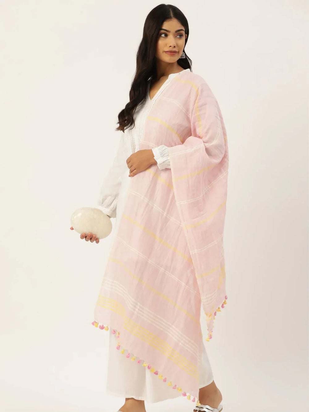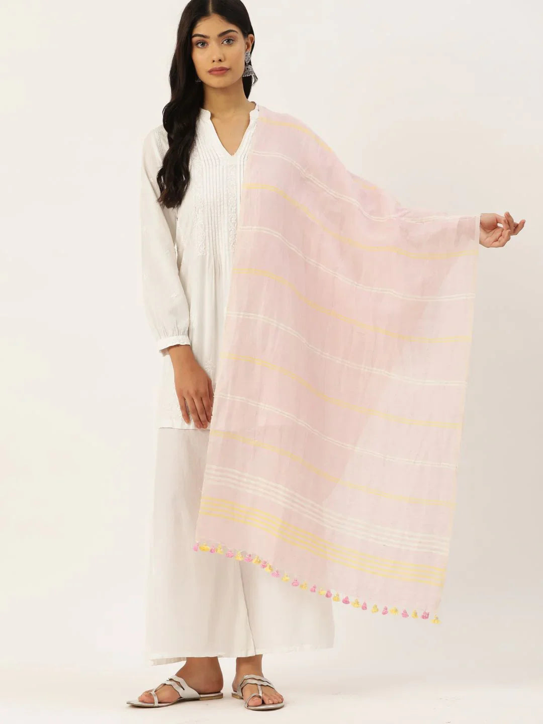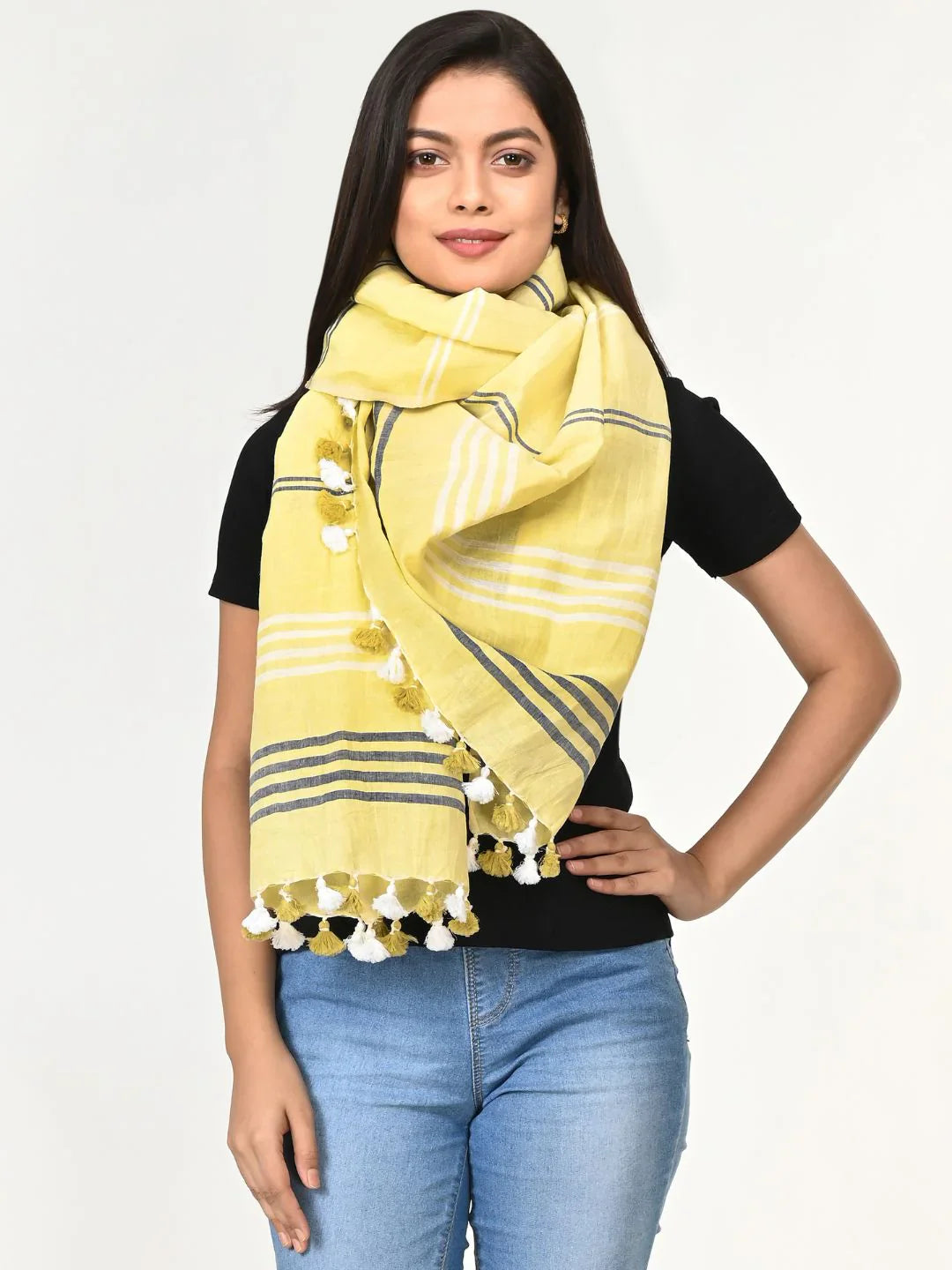 Beige & Cream Hand Woven Pure Silk Shibori Stole