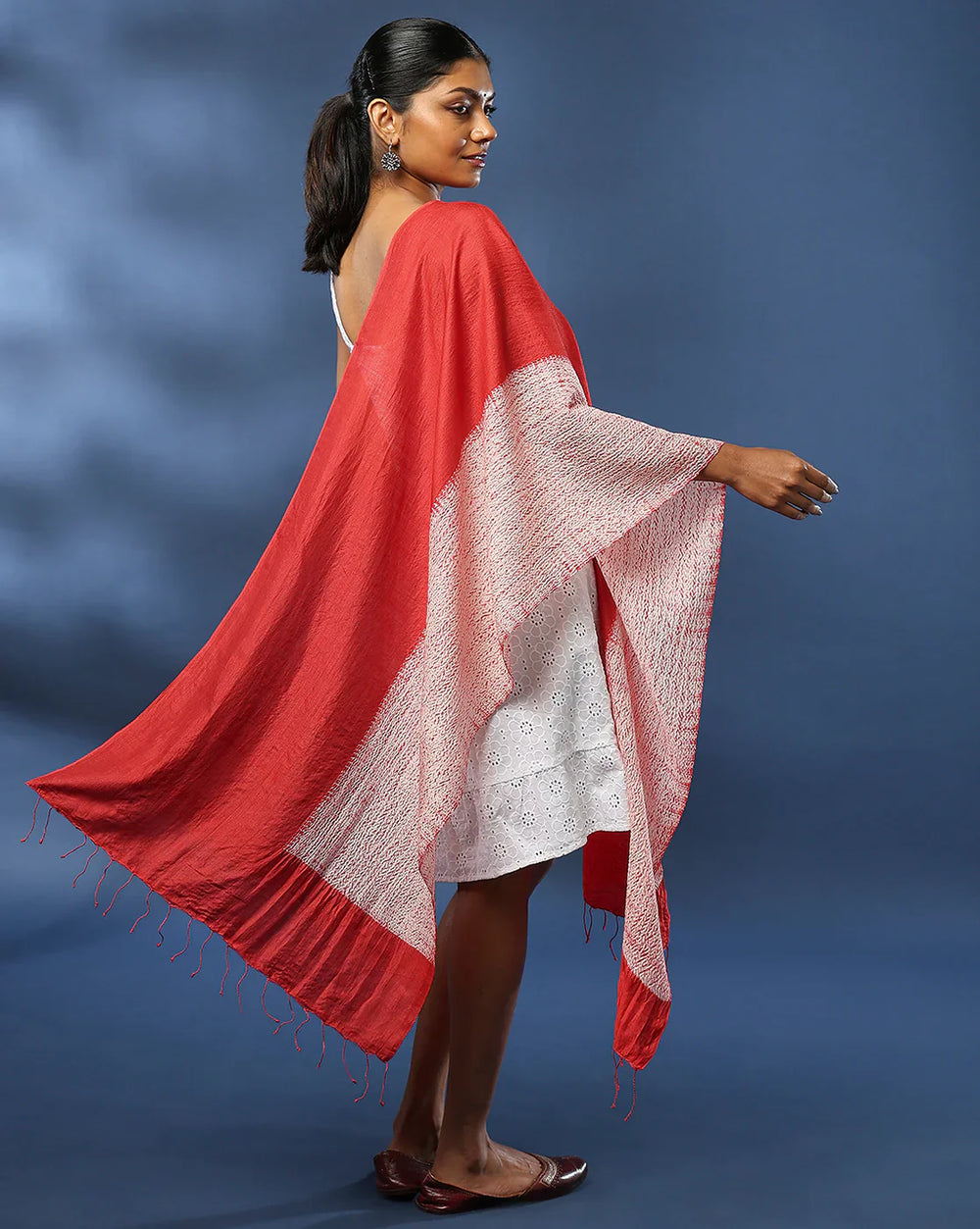Ivory Beige Hand Woven Pure Silk Shibori Stole