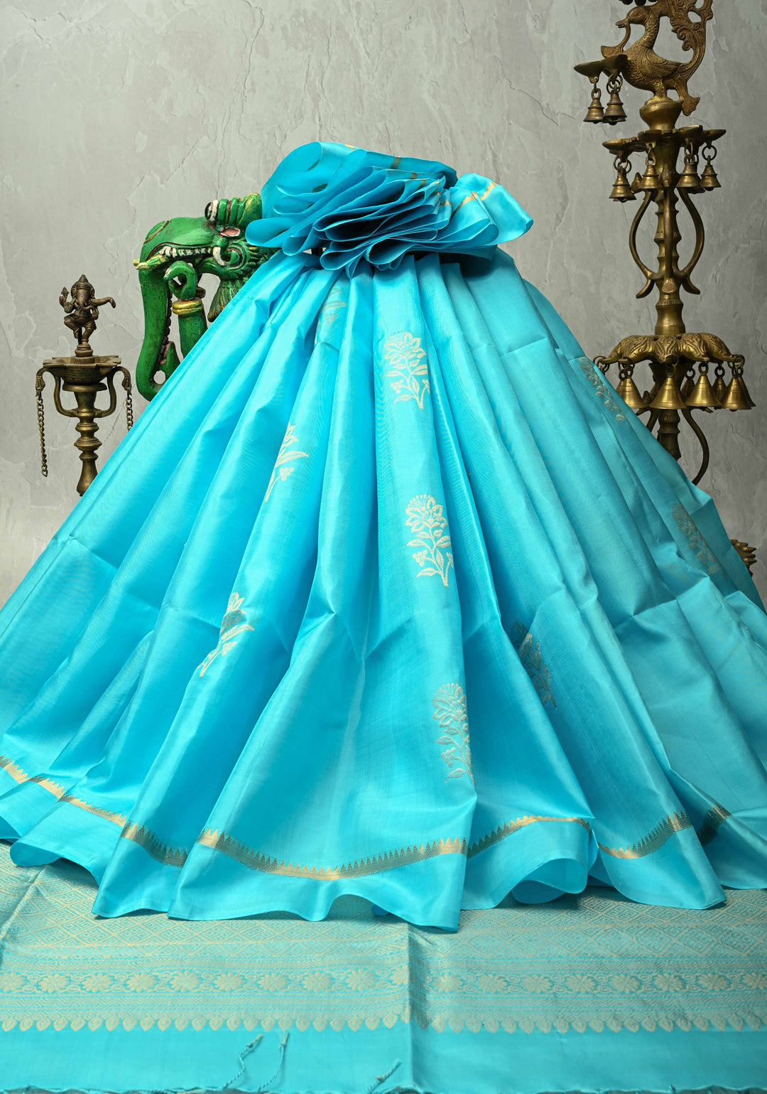 Cyan Kanjivaram Soft Silk Saree with Floral Zari Buttas and Zari Pallu | SILK MARK CERTIFIED