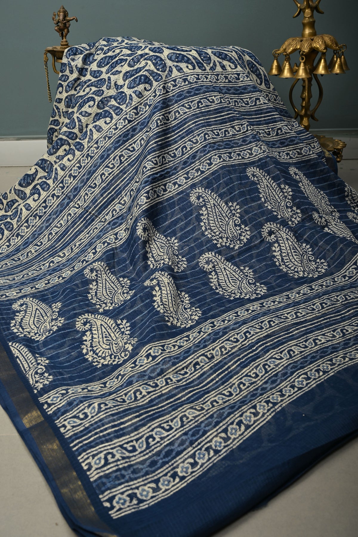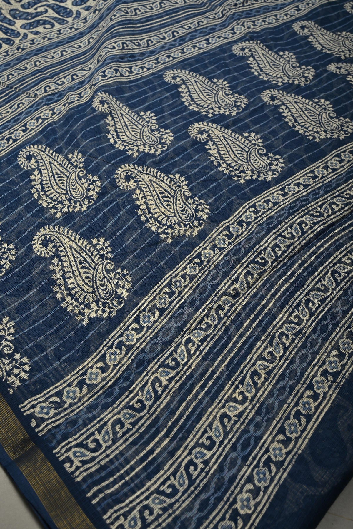 Elevate your wardrobe with this elegant Beige Kota Doria Cotton Saree, a perfect blend of comfort and sophistication. Crafted from lightweight Kota Doria cotton, the saree drapes effortlessly, offering a breathable and airy feel ideal for all-day wear. It features a delicate paisley hand block print that adds timeless charm and artisanal appeal, while the minimal tissue zari border brings a subtle touch of shimmer and refinement without overpowering the overall design. Perfect for casual gatherings, festive occasions, or daytime celebrations, this saree embodies understated elegance and traditional craftsmanship, making it a versatile addition to any ethnic collection.
