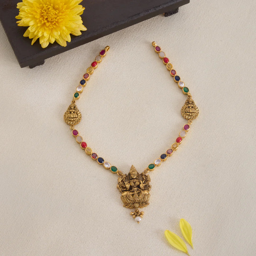 Pure 92.5 Silver, Gold Plated Mani Priya Lakshmi Necklace