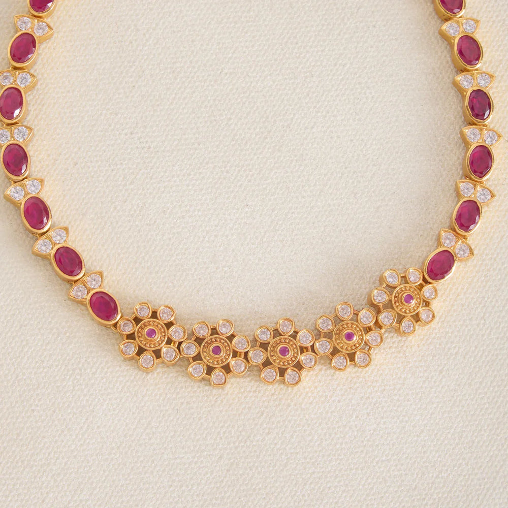 Pure 92.5 Silver, Gold Plated Deviya Manik Short Necklace