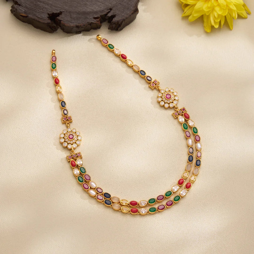Pure 92.5 Silver, Gold Plated Nav Roshni Short Necklace