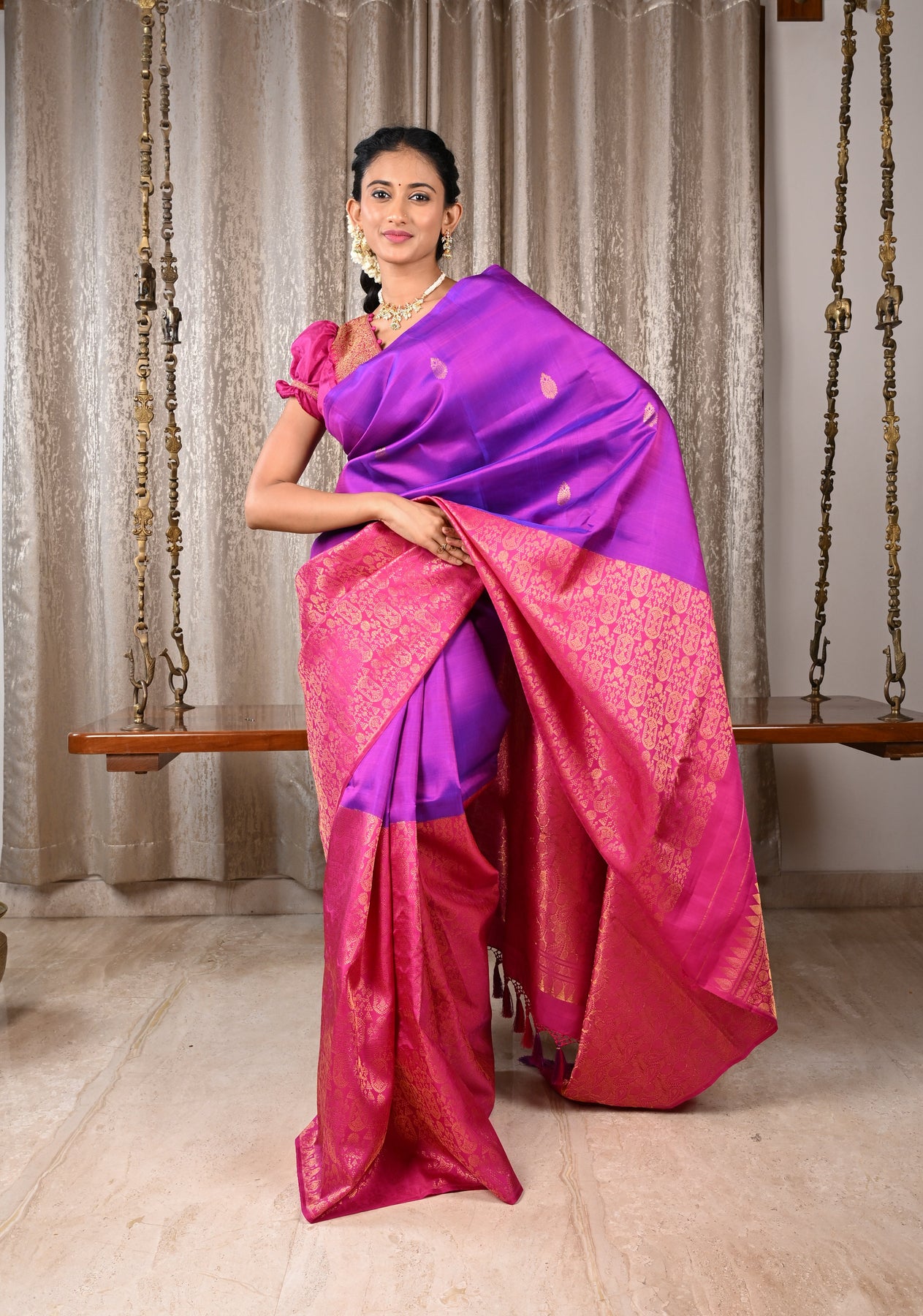 Purple Dual Tone Stunning Half Border Kanjivaram Pure Silk saree with Zari Brocade | SILK MARK CERTIFIED