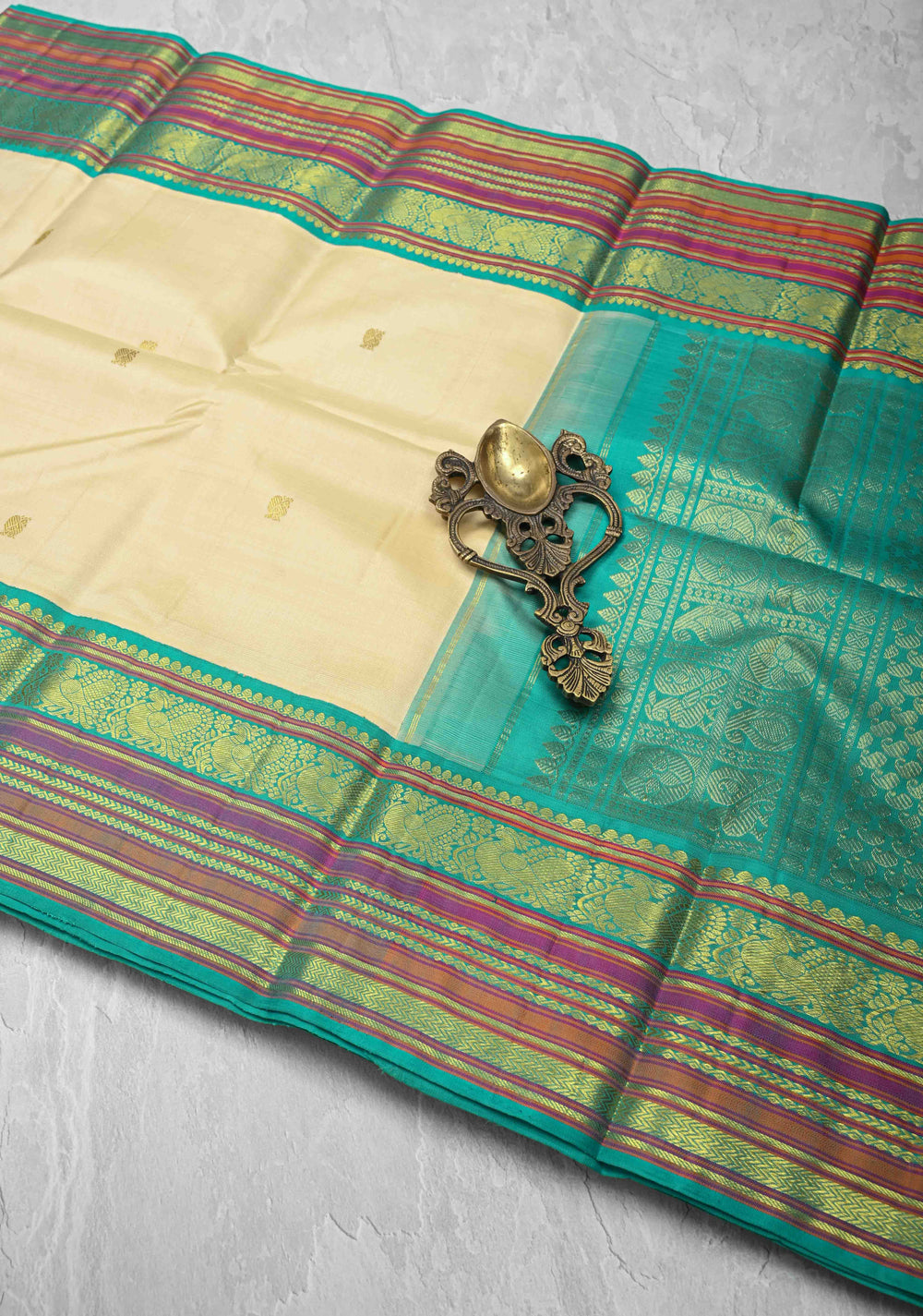 How to Style: Pair it with heavy traditional jewelry like gold or temple-inspired pieces. To complete the elegant look, wear a bun hairstyle adorned with flowers. These sarees often have intricate borders, so choose a blouse that complements them without overpowering the design.