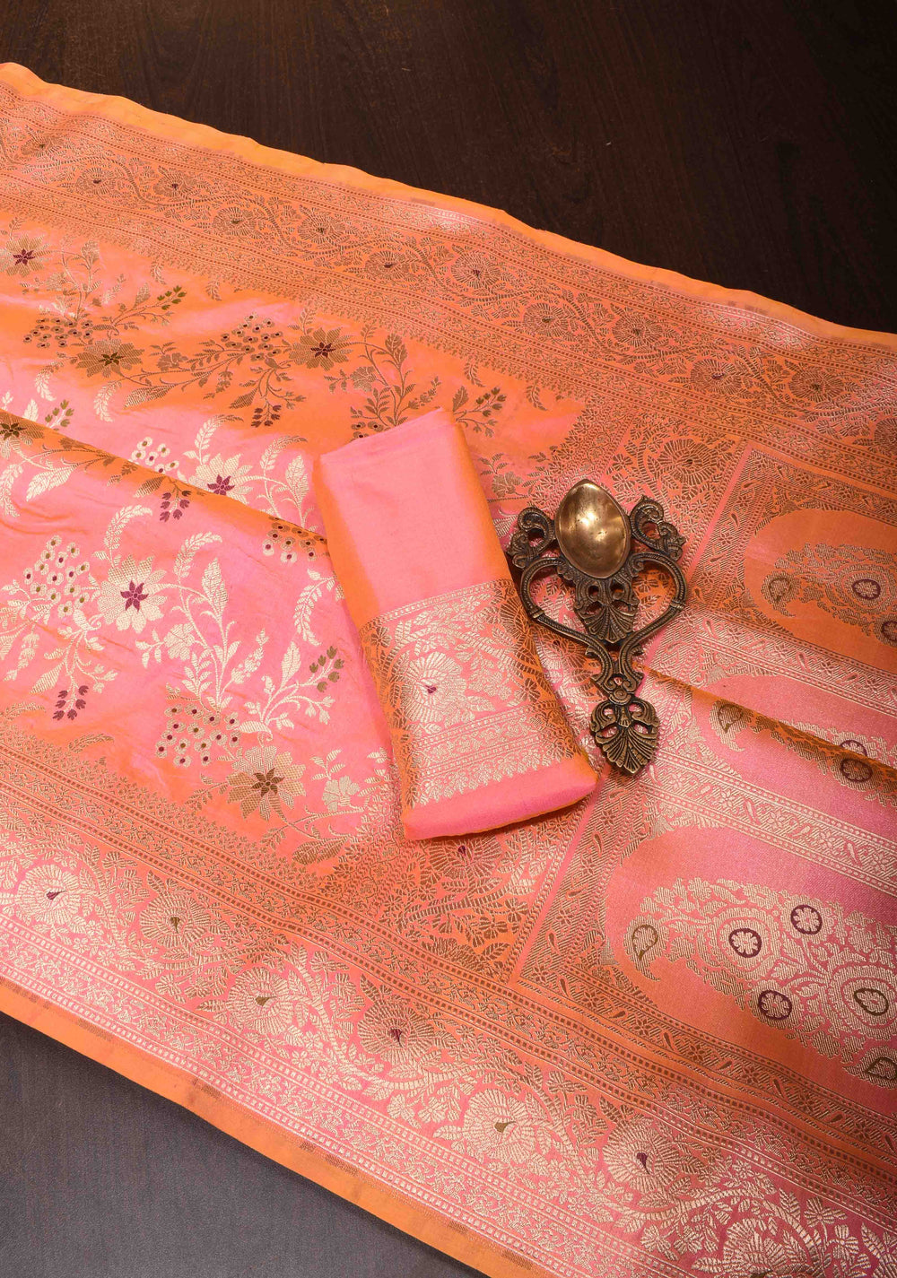 If your saree has two main colors, a simple and safe way to style it is by picking one of those colors for your blouse. For example, if your saree is pink and gold, you can go with a pink blouse or a gold blouse. This creates a balanced, coordinated look that’s elegant and timeless.