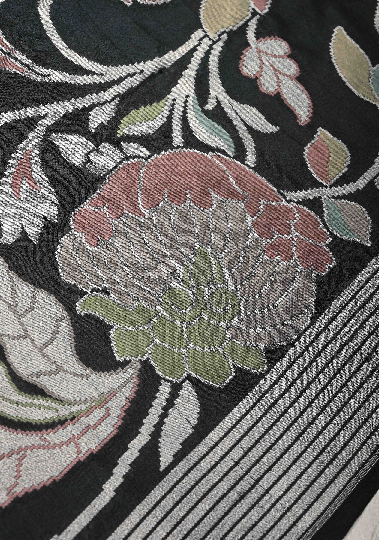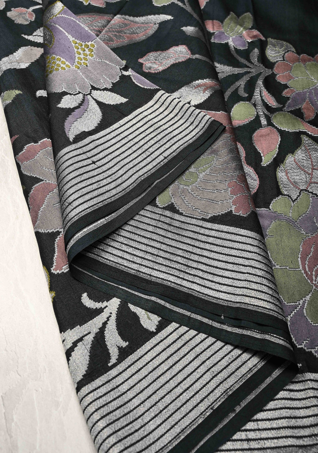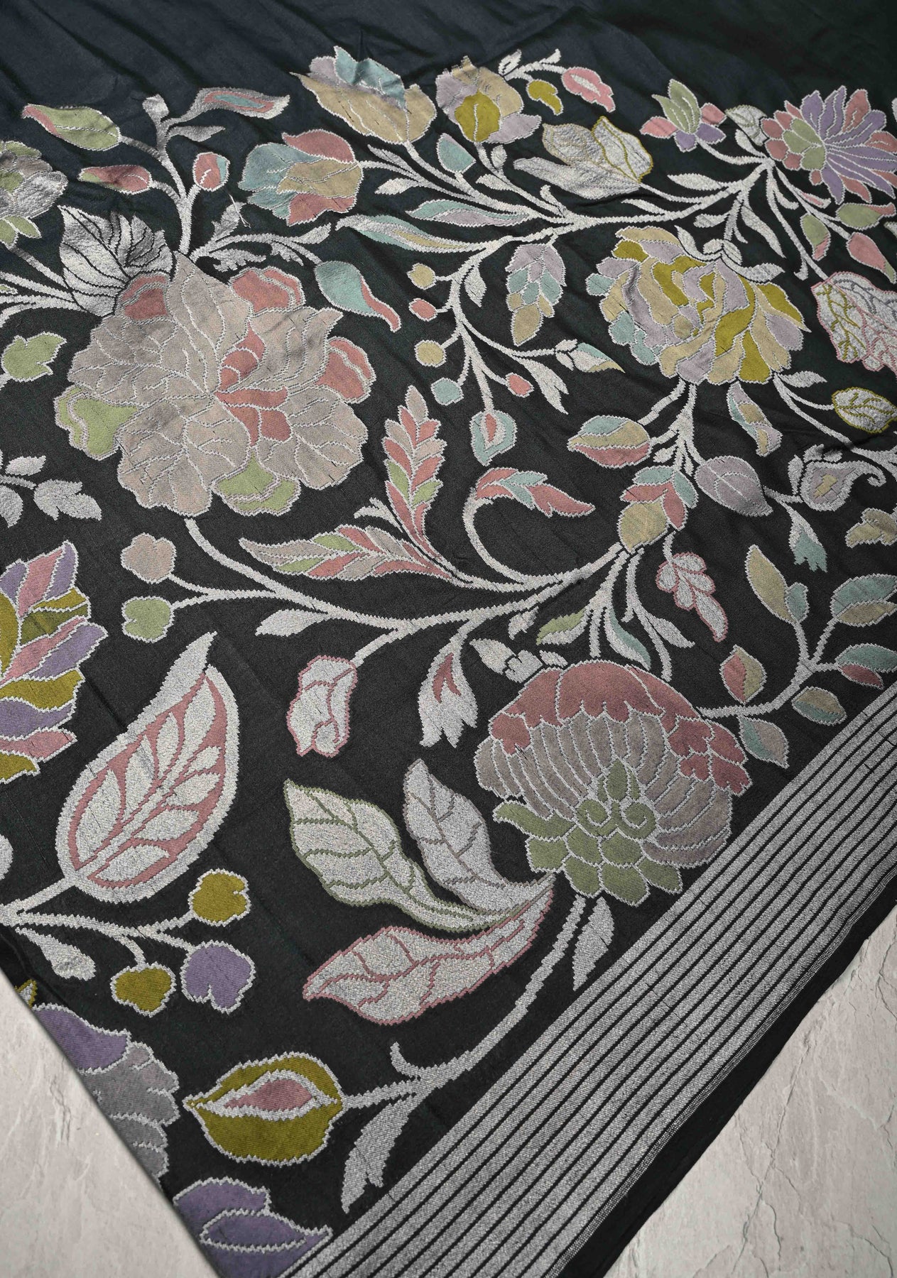 Black Banarasi Tussar Georgette Saree with Meenakari Floral Jaal and Zari Border | SILK MARK CERTIFIED