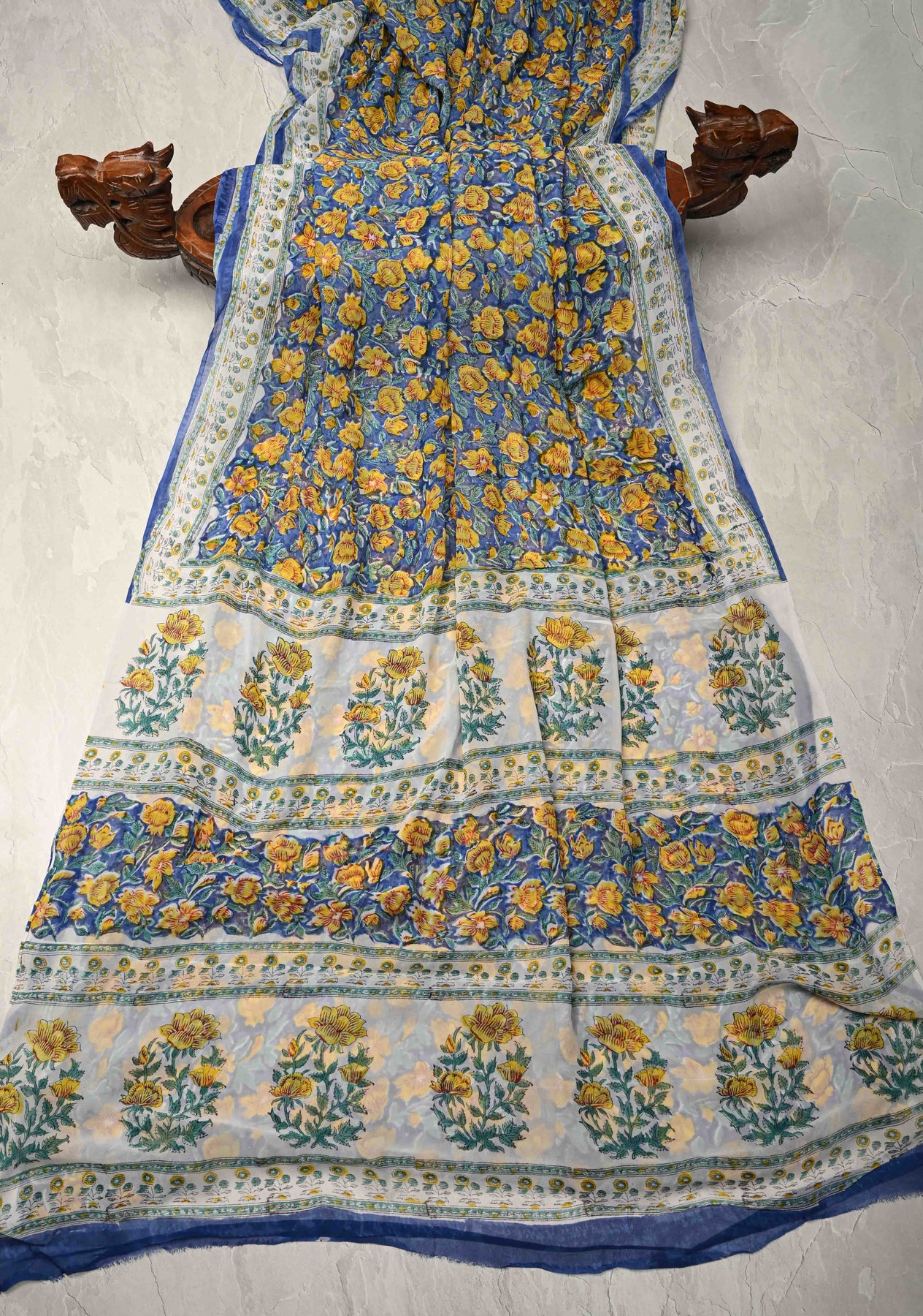 Blue Georgette Saree with Sanganeri Hand Block Print